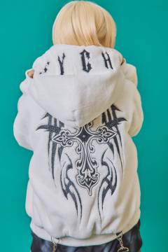 89446 PSYCHO NATION(サイコ・ネーション) クマ耳ボア ZIP パーカー - White