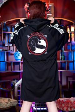 89622 らんま1/2×LISTEN FLAVOR (リッスン・フレーバー) 乱馬と玄馬(パンダ)のチャイナジャージワンピ - Black
