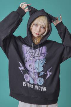 89912 寝田ルネ×PSYCHO NATION(サイコ・ネーション) DEVIL CATパーカー - Black