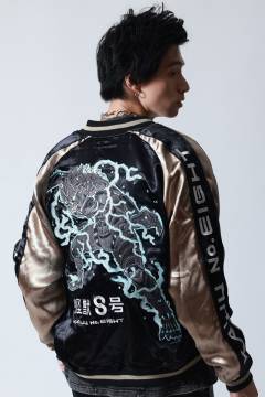 90003 over print (オーバープリント) Melton MA-1 jacket - Black