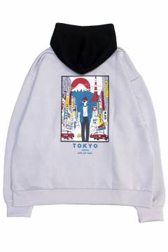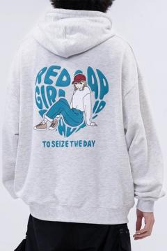 91435 Red Cap Girl(レッド・キャップ・ガール) ダンボール・バック・プリント・フーディ - Light Gray