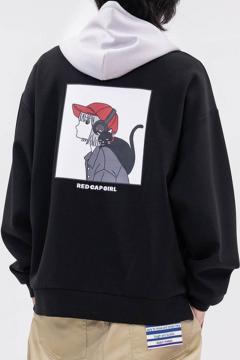 91437 Red Cap Girl(レッド・キャップ・ガール) ダンボール・バック・プリント・フーディ - Black