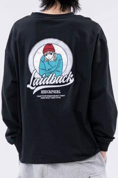91438 Red Cap Girl(レッド・キャップ・ガール) バック・サテン刺繍ロンT - Black