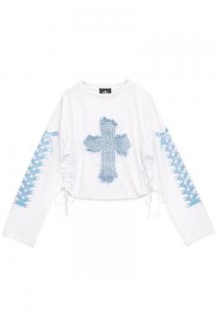 91850 LISTEN FLAVOR (リッスン・フレーバー) 十字架y2kシャーリング・トップス - White