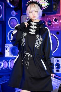 91851 LISTEN FLAVOR (リッスン・フレーバー) ドラゴン・チャイナ・ジャージ・ワンピ WhiteXBlack
