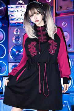 91852 LISTEN FLAVOR (リッスン・フレーバー) ドラゴン・チャイナ・ジャージ・ワンピ PinkXBlack