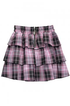 91855 LISTEN FLAVOR (リッスン・フレーバー) センター・ジップ・ティアード・スカート - Pink Check