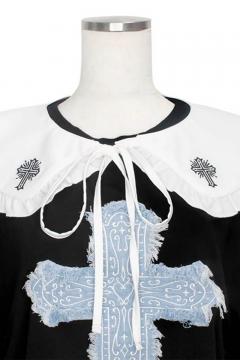 91856 LISTEN FLAVOR (リッスン・フレーバー) 十字架リボン・フリルつけ襟 - Black