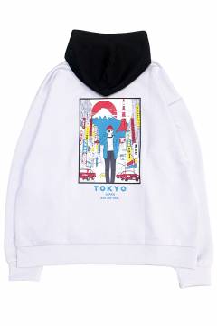 91434 Red Cap Girl(レッド・キャップ・ガール) ダンボール・バック・プリント・フーディ - White