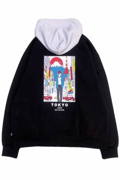 91436 Red Cap Girl(レッド・キャップ・ガール) ダンボール・バック・プリント・フーディ - Black