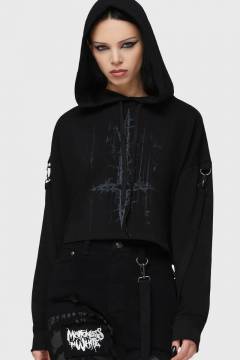 92586 MOTIONLESS IN WHITExKILL STAR(キル・スター) Final Dictvm Crop Hoodie - Black