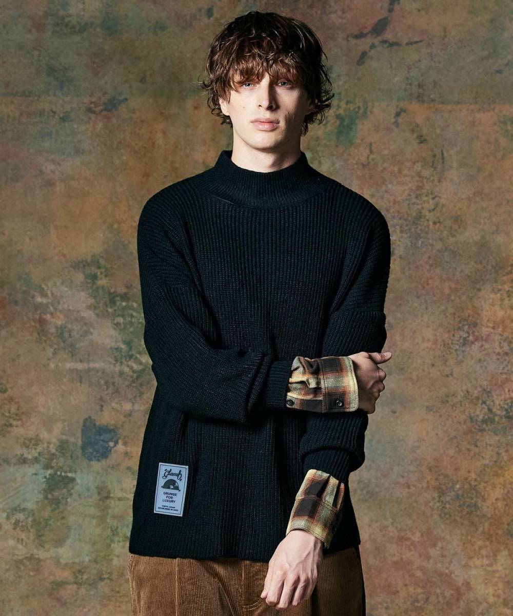 【予約商品】glamb(グラム) GB0424/KNT08 : Check Layered Pullover Knit - Black