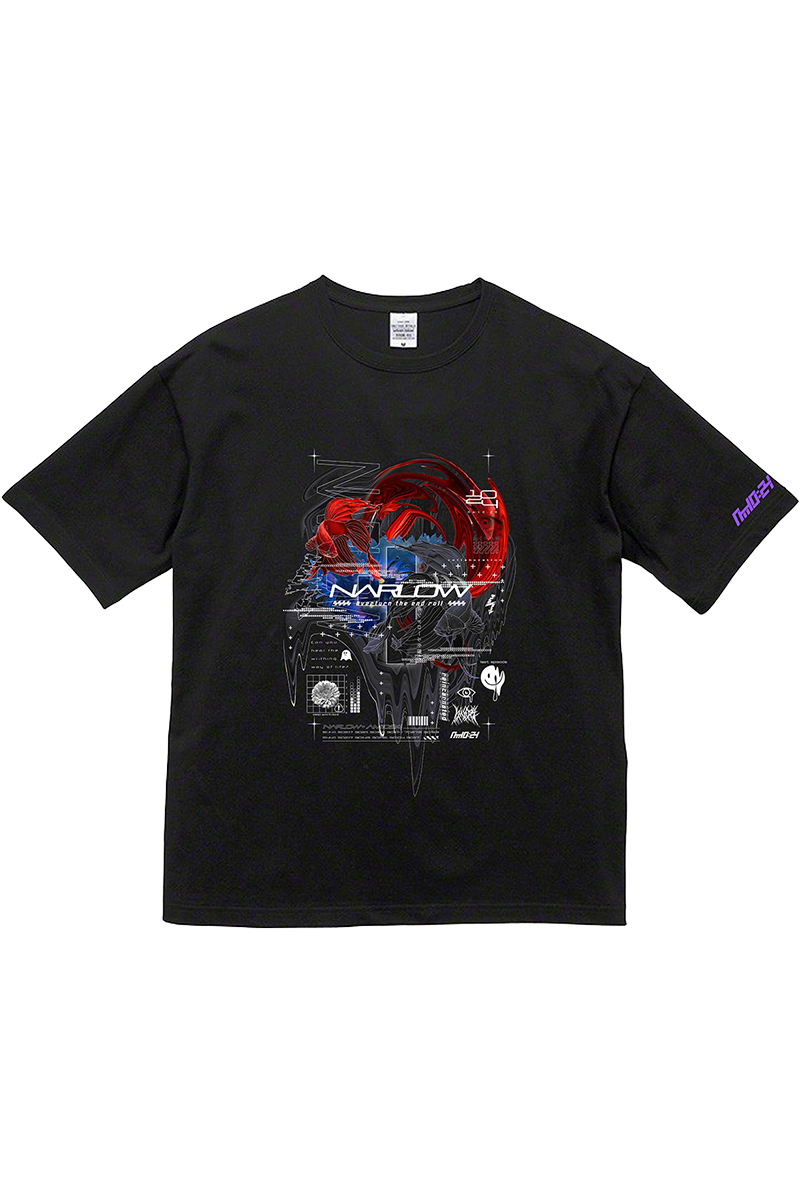 楽曲『エンドロールを覆せ』から着想し、ブランドの得意とする近未来、幾何学的要素で再構築したデザインを落とし込んだオーバーサイズTシャツ。