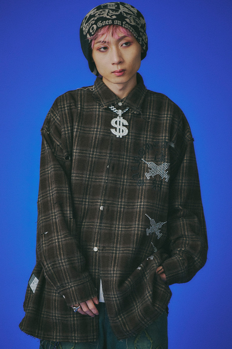 GALFY(ガルフィー)ピカピカ注射器ボロシャツ - Brown