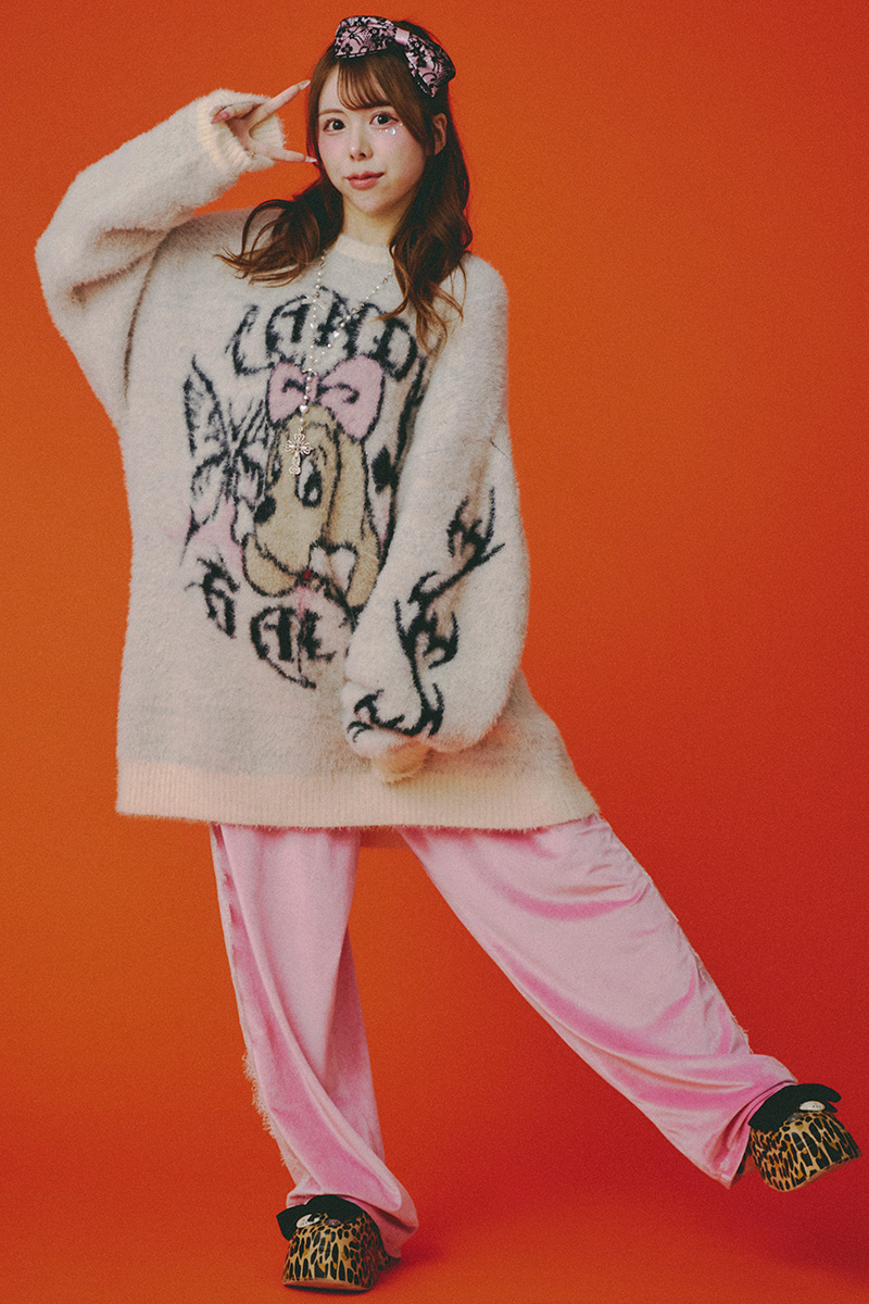 【予約商品】GALFY(ガルフィー) ふわふわダークキャンディーニット - White