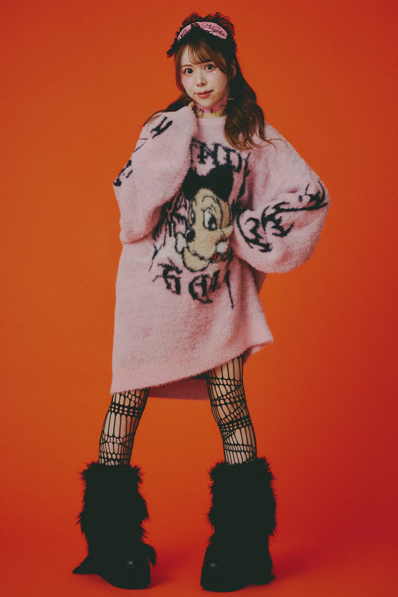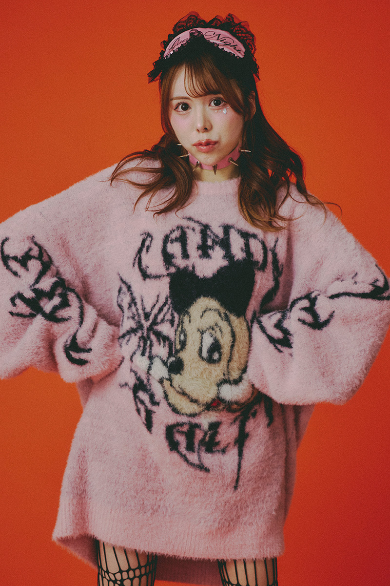 【予約商品】GALFY(ガルフィー) ふわふわダークキャンディーニット - Pink