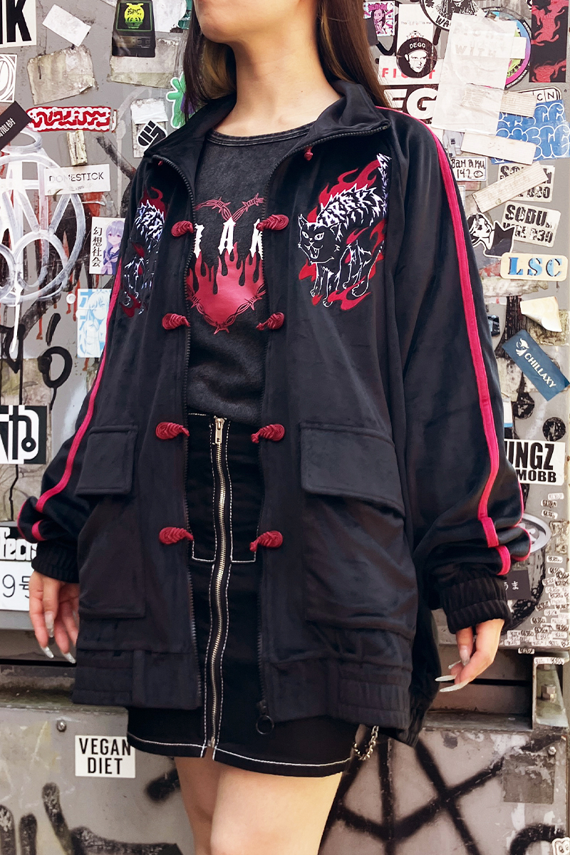 程よく光沢感のあるベロア素材を使用したチャイナジャージ。