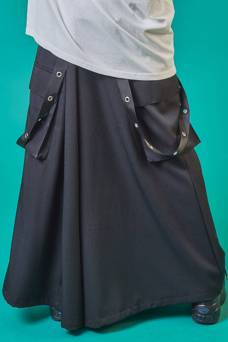 PSYCHO NATION (サイコネーション) 切り替え袴カーゴパンツ - Black