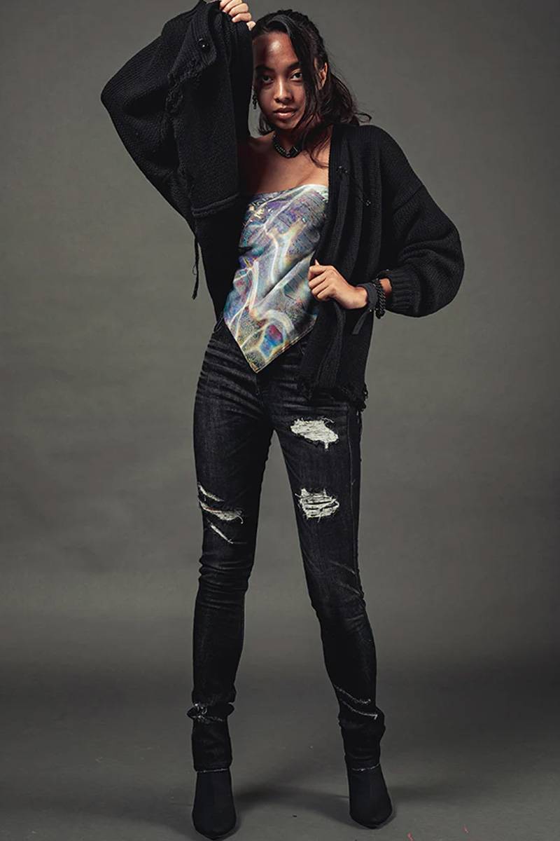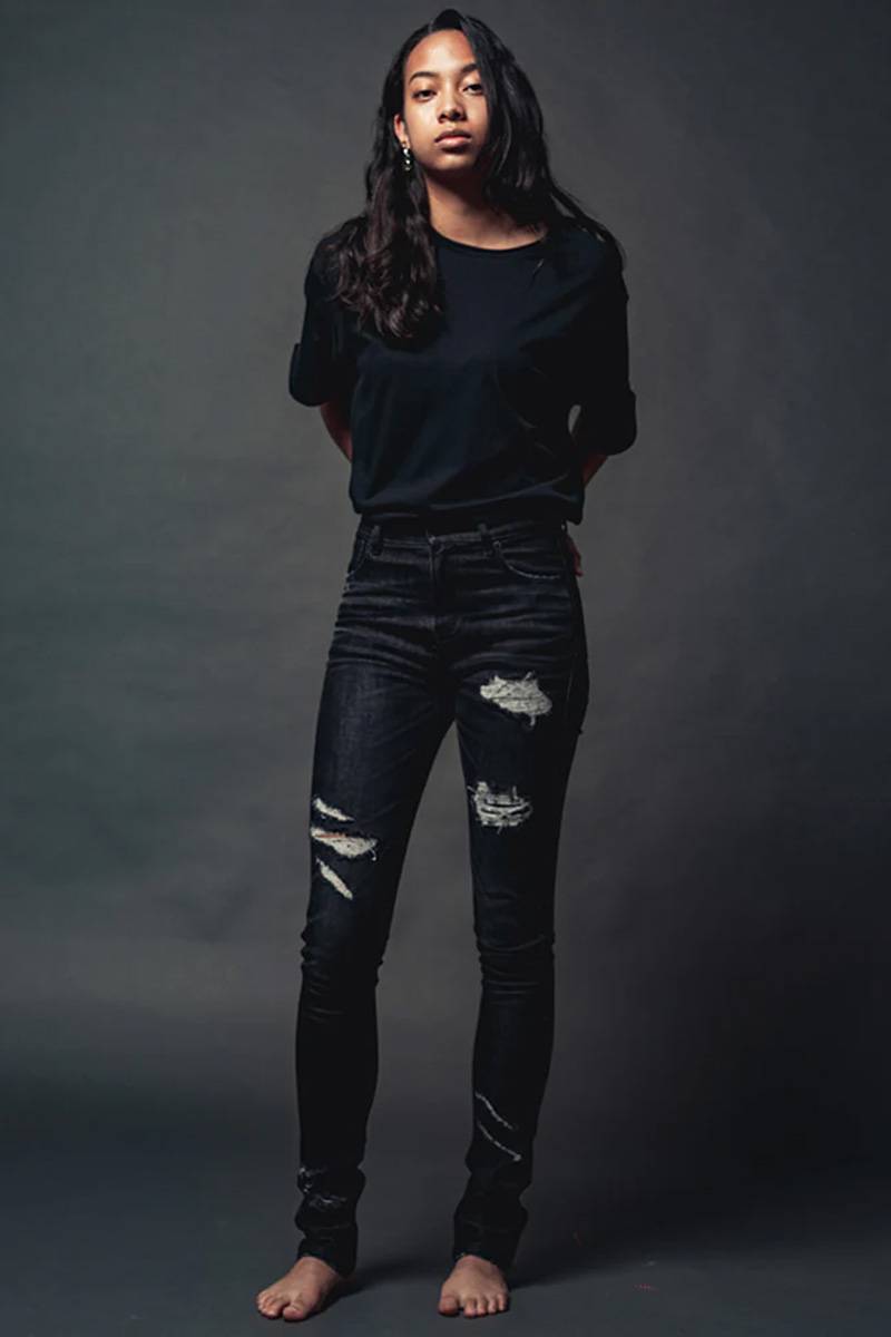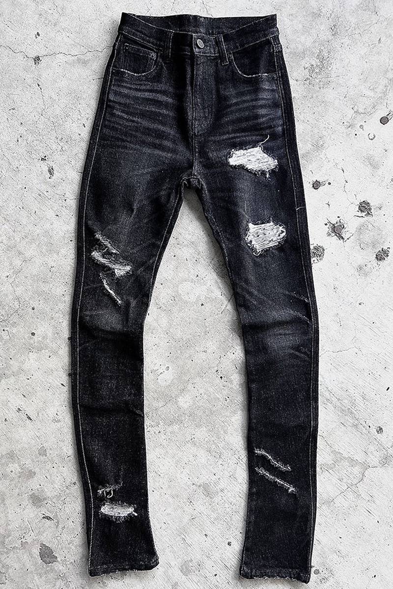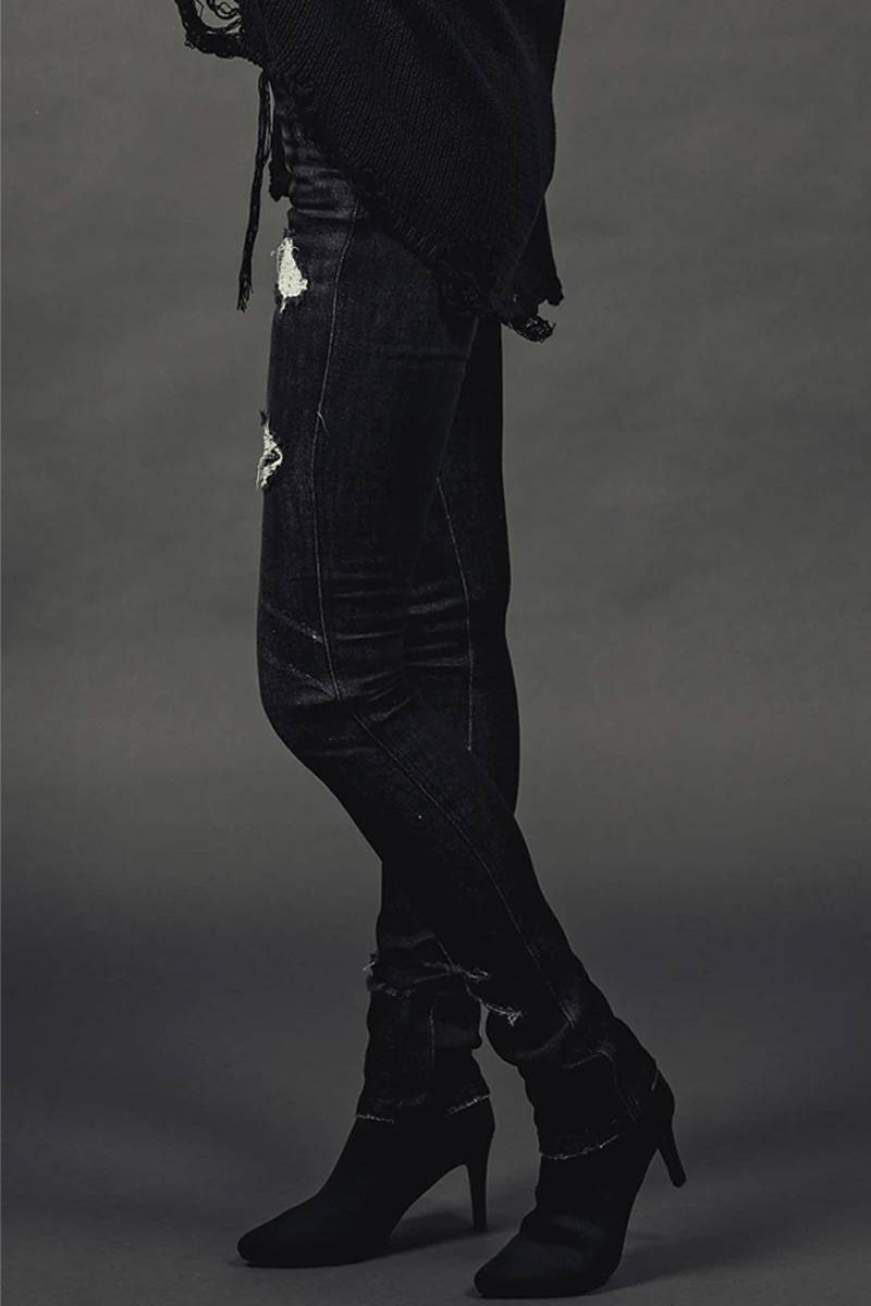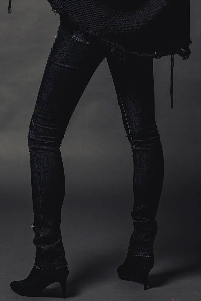 Abyssea(アビセア) Banana curve skinny denim - Black one wash crash