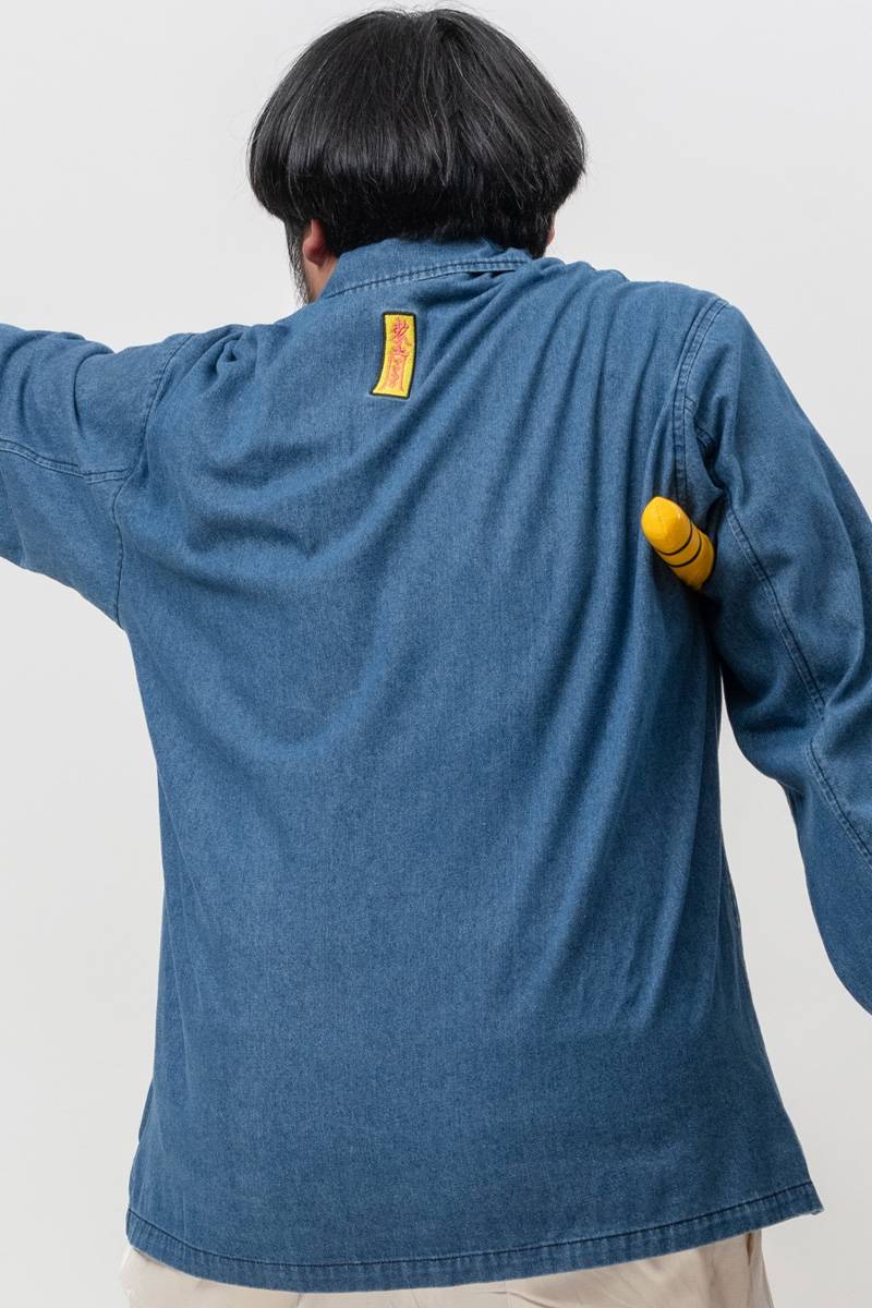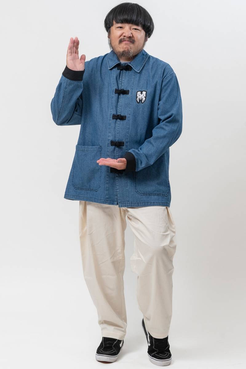 フロントには定番“Mどろ~ん”刺繍、 バックには、チャイナならではの“マジカルお札”の遊び心ワンポイント刺繍。 フロントのボタンや袖口ももちろんチャイナ仕様。