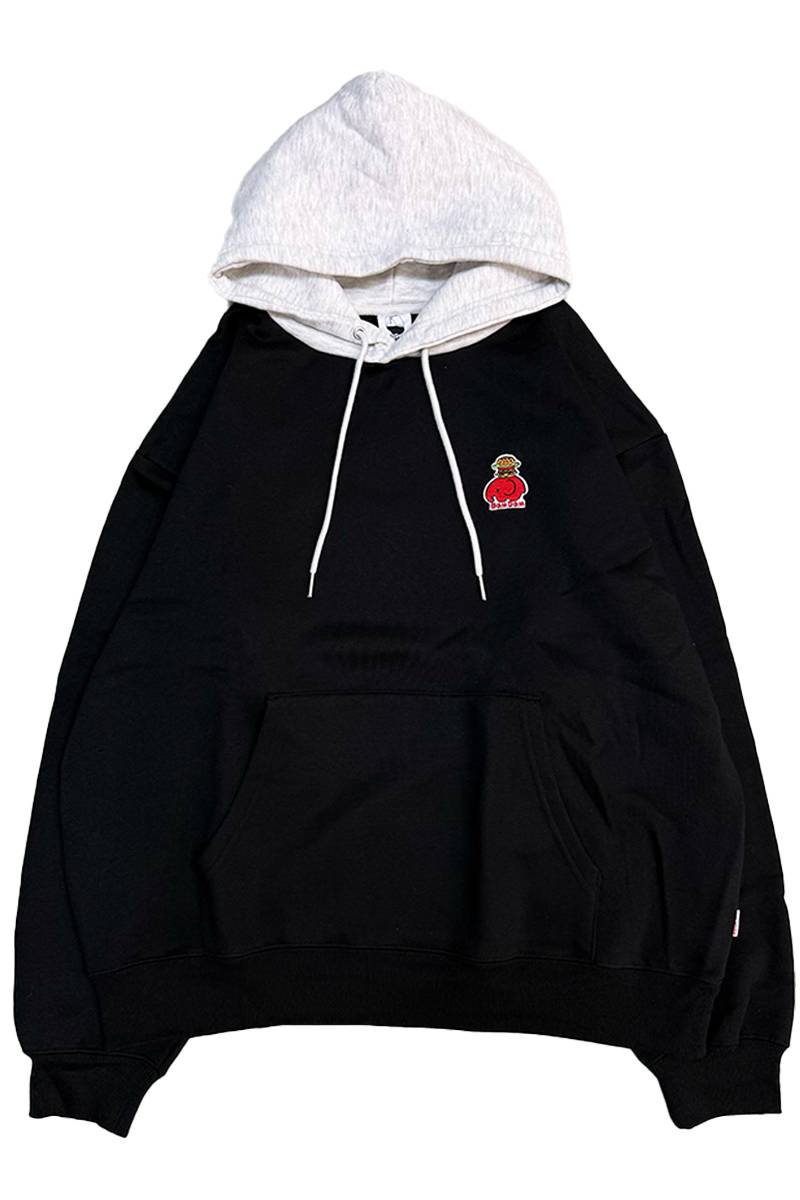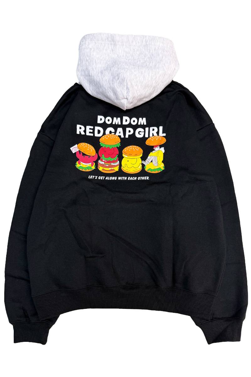 ドムドムハンバーガー×Red Cap Girl(レッド・キャップ・ガール) 裏起毛 フード配色 プルパーカー - Black