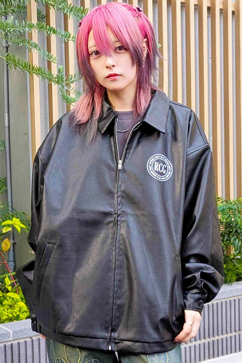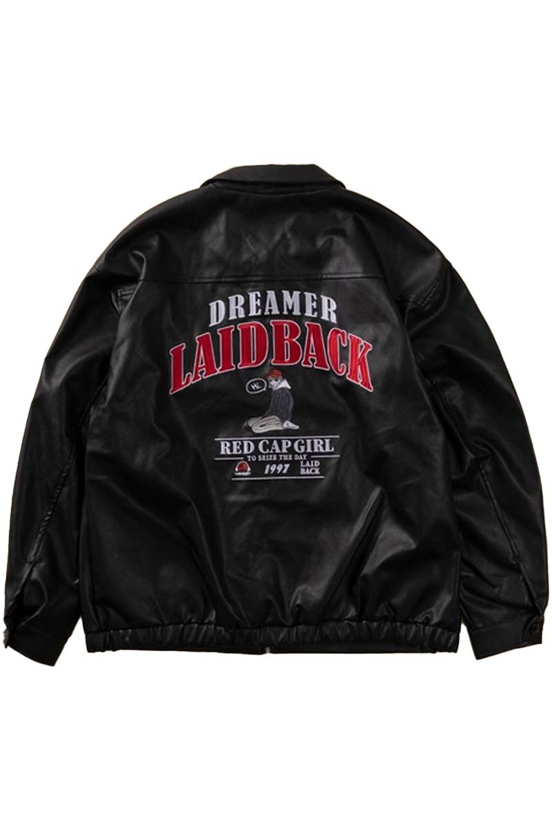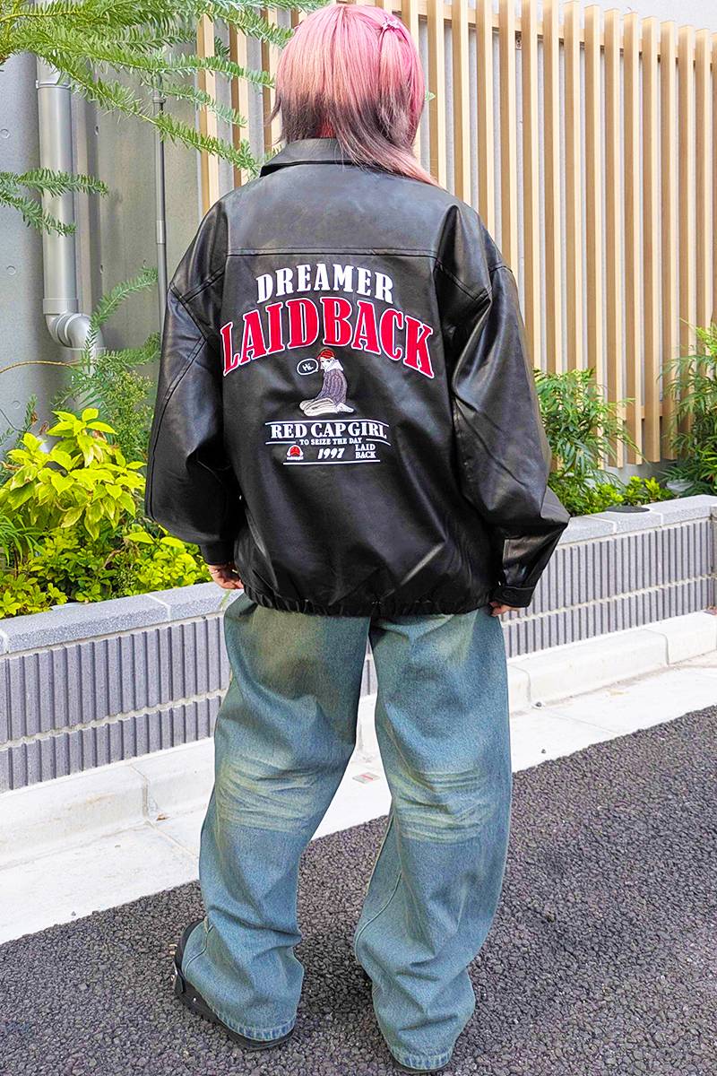 Red Cap Girl(レッド・キャップ・ガール) バック刺繍 PUレザー ジップブルゾン