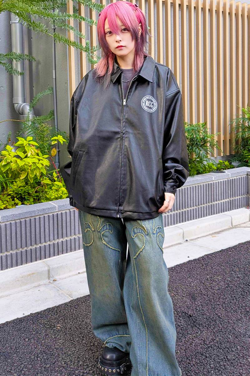 バックには刺繍でのデザインを大胆にあしらったPUレザーブルゾンが登場!