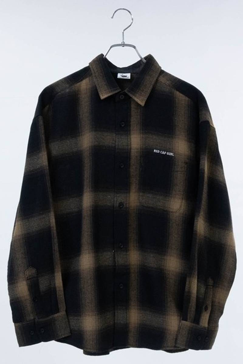 Red Cap Girl(レッド・キャップ・ガール) バックイラスト刺繍オンブレチェックバルーンスリーブシャツ - Brown