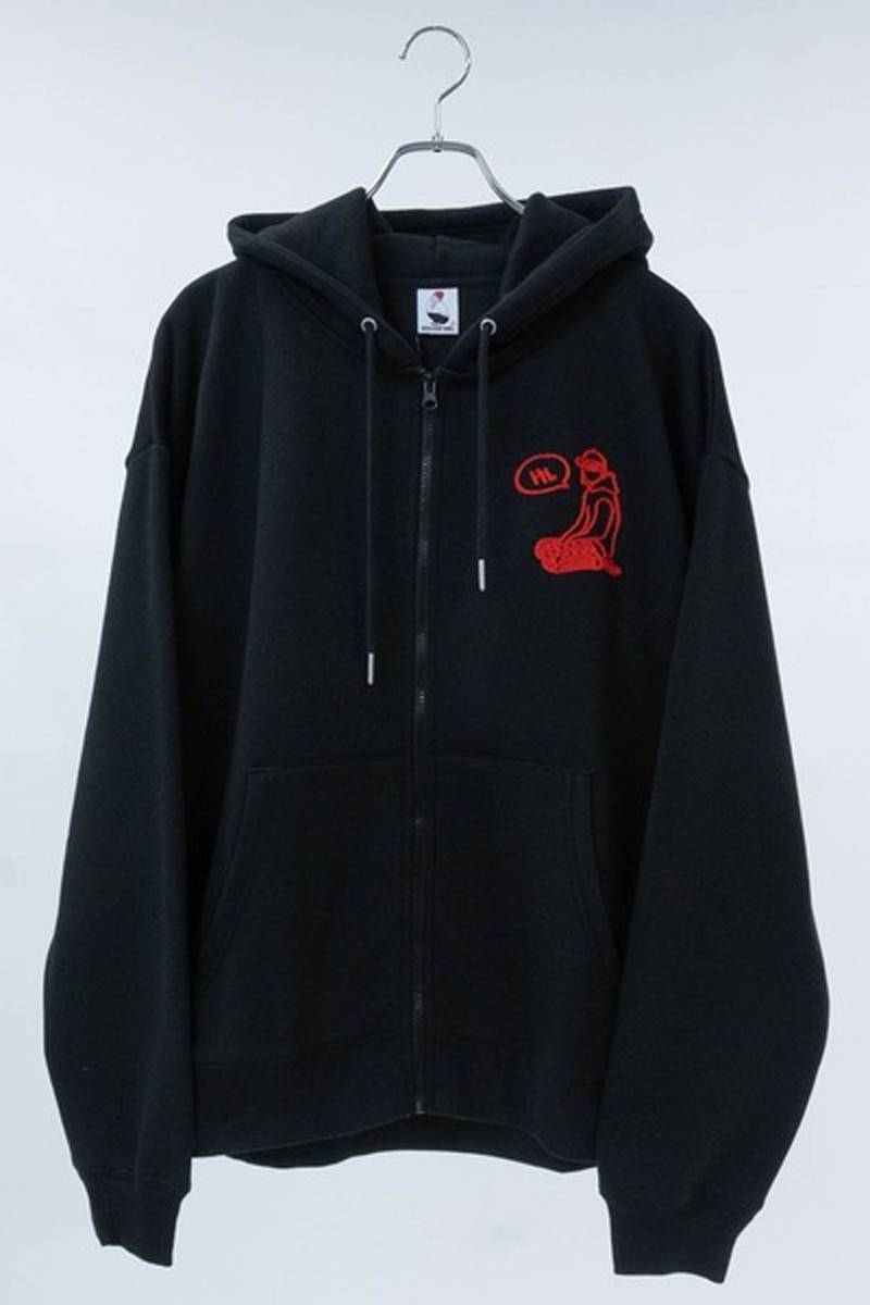 Red Cap Girl(レッド・キャップ・ガール) バックサテン刺繍 フルジップ ビッグパーカー - Black