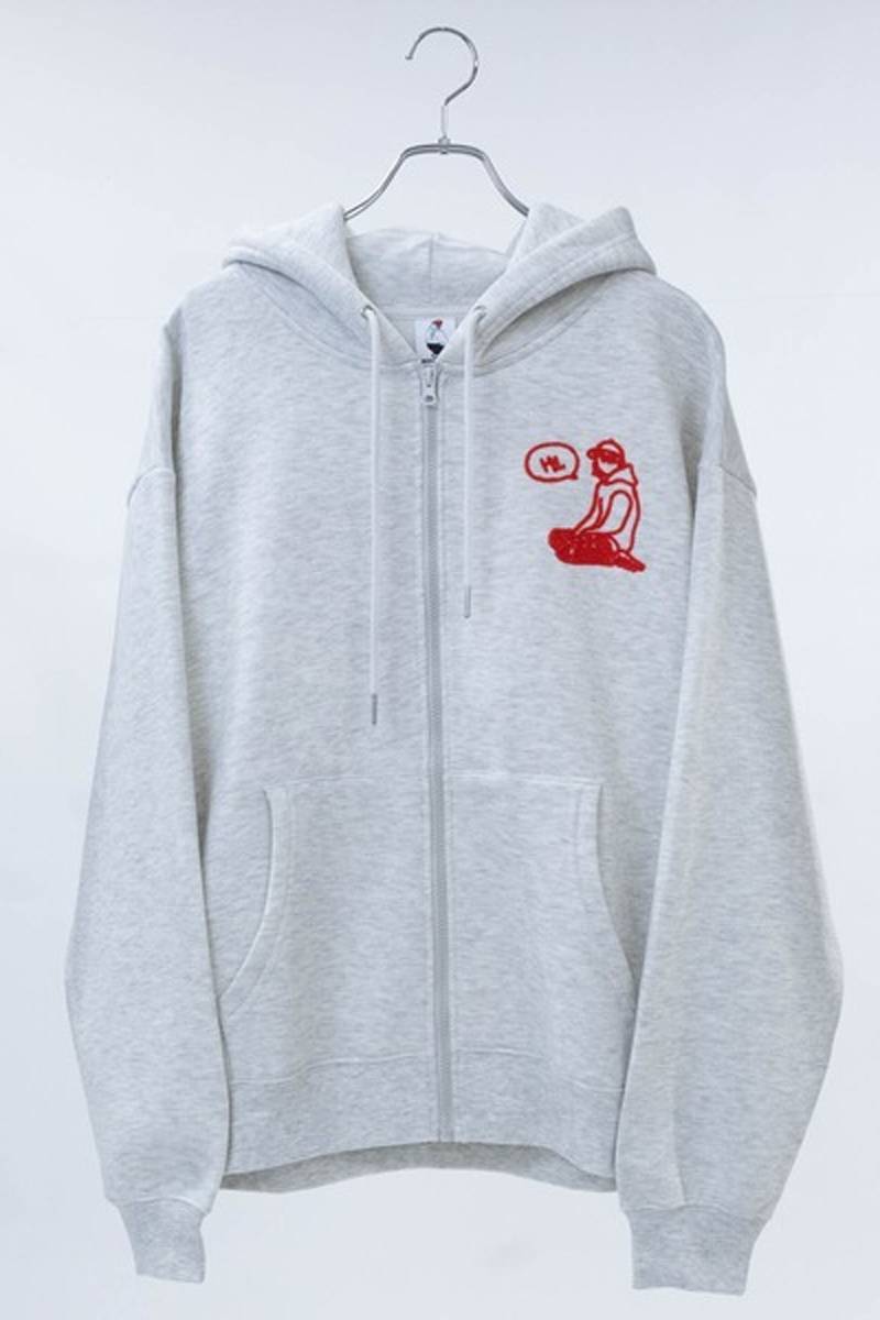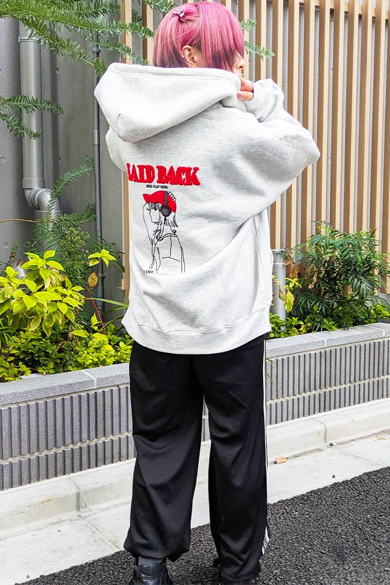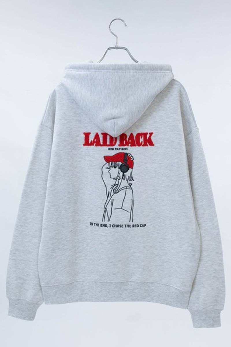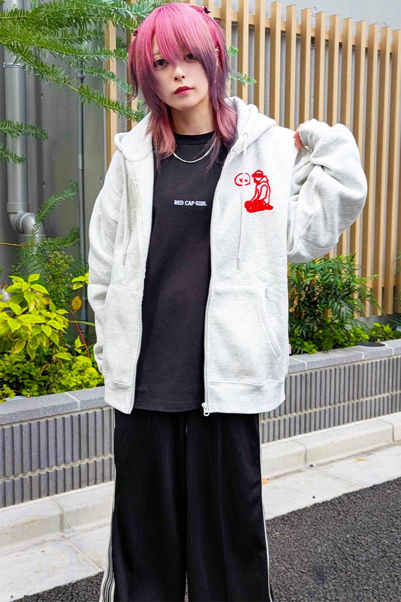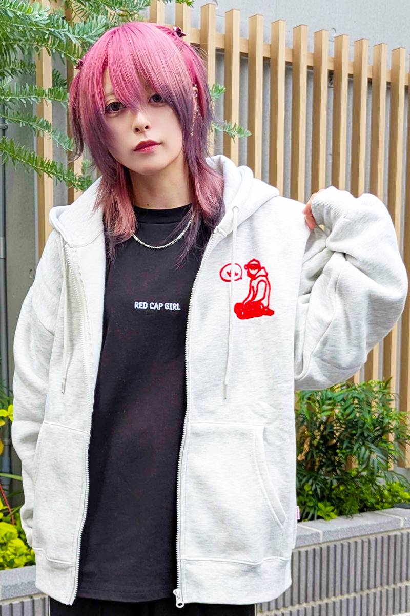 Red Cap Girl(レッド・キャップ・ガール) バックサテン刺繍 フルジップ ビッグパーカー - Ash Gray
