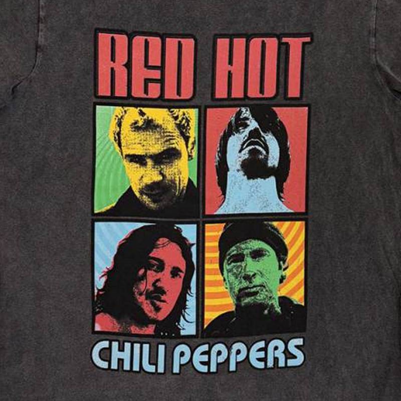 RED HOT CHILI PEPPERS Unisex Stone Wash バンドTシャツ: Portrait Photos - CHARCOAL GREY