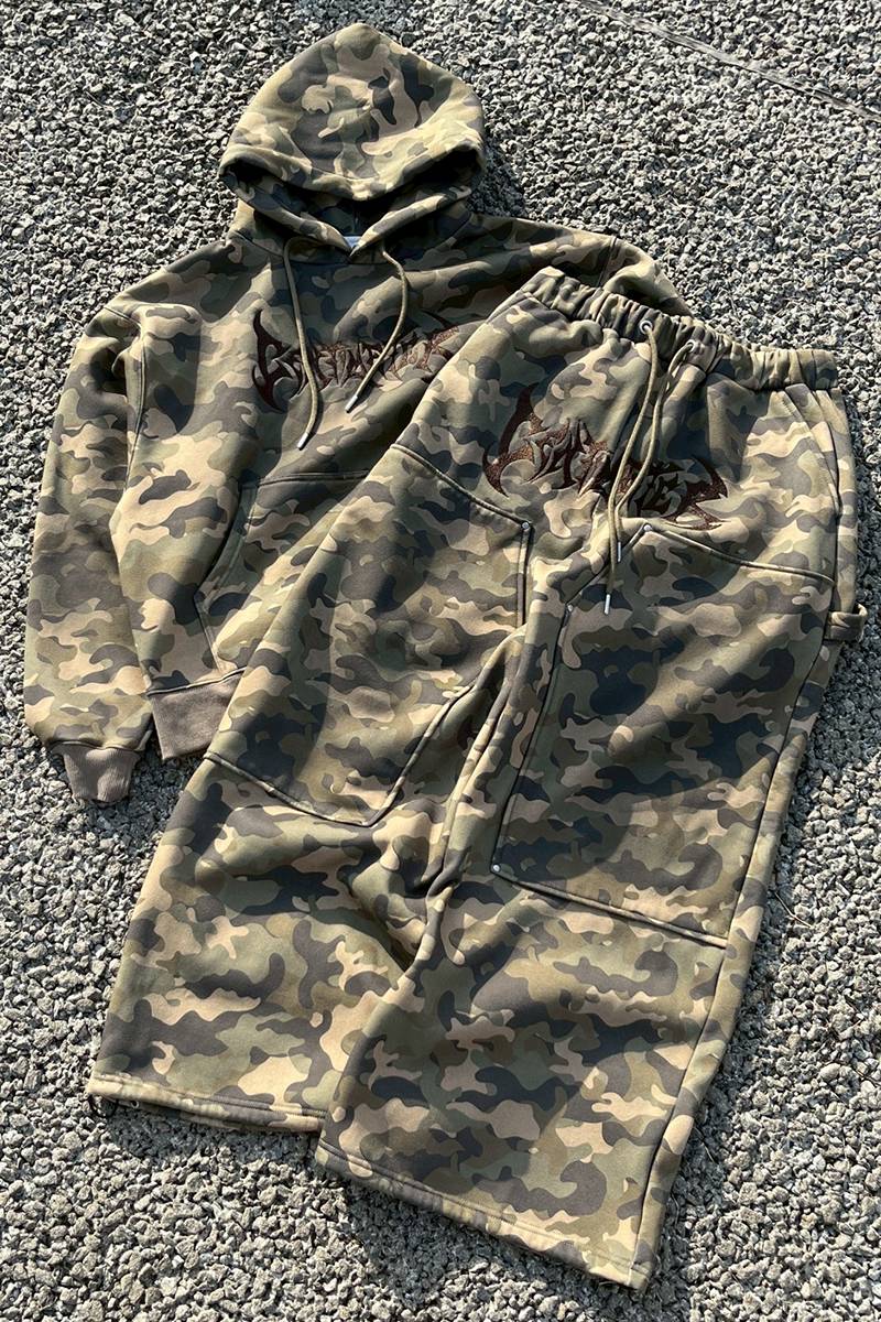 centimeter(センチメーター) Tribal logo double knee sweat pants - Camo