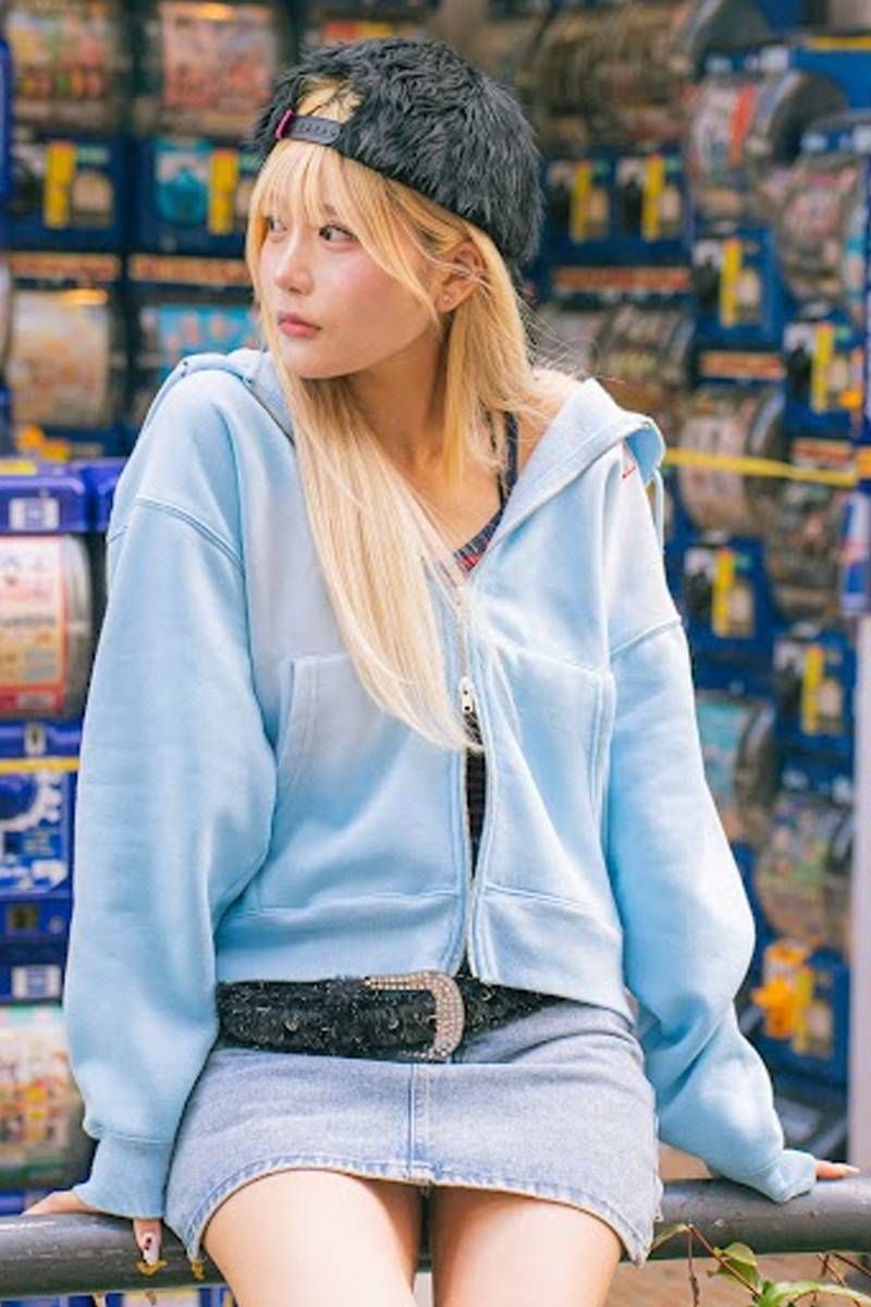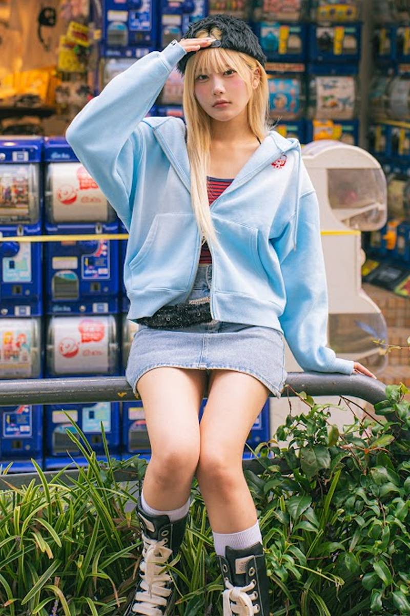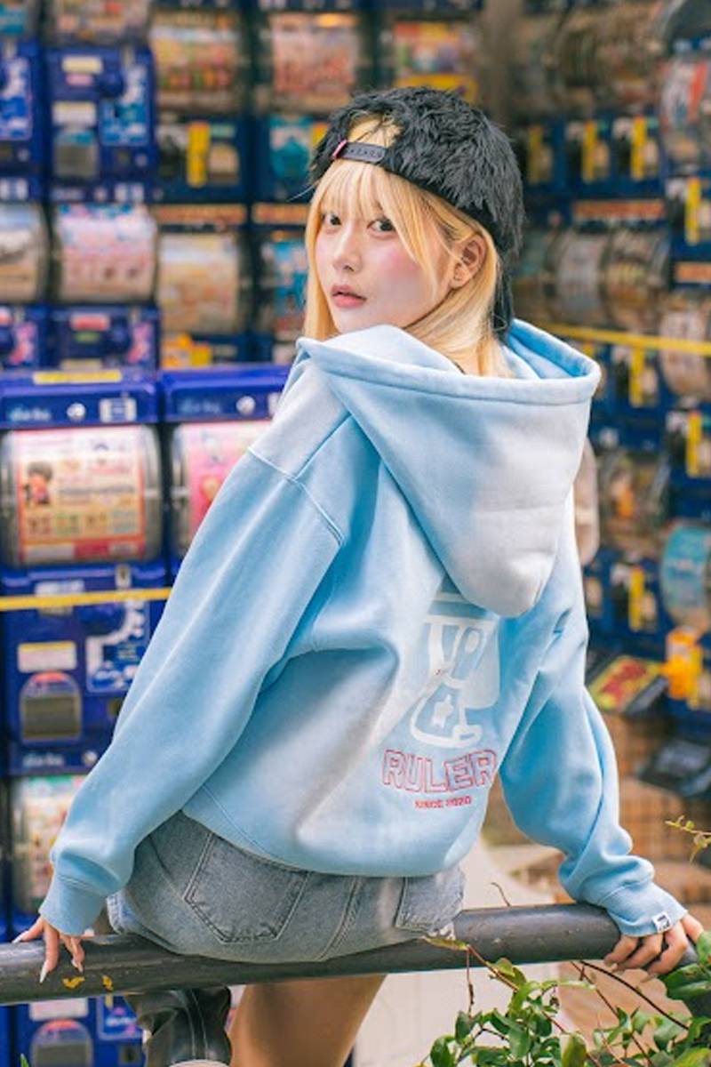 centimeter(センチメーター) Boxy ruler zip hoodie - Sax Blue
