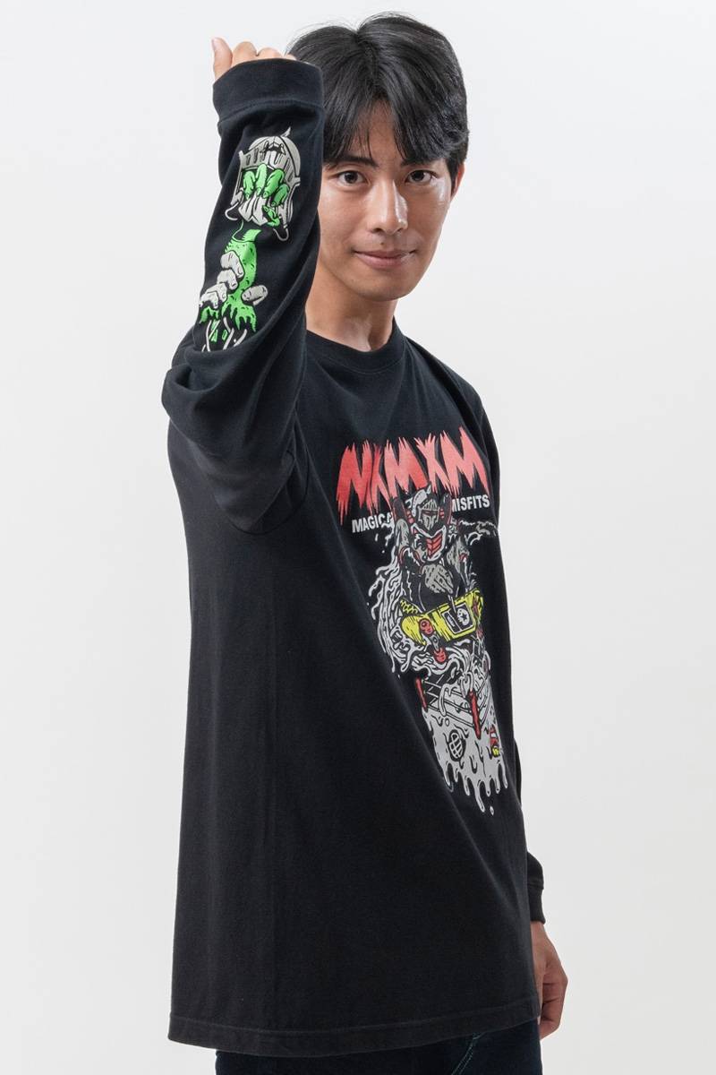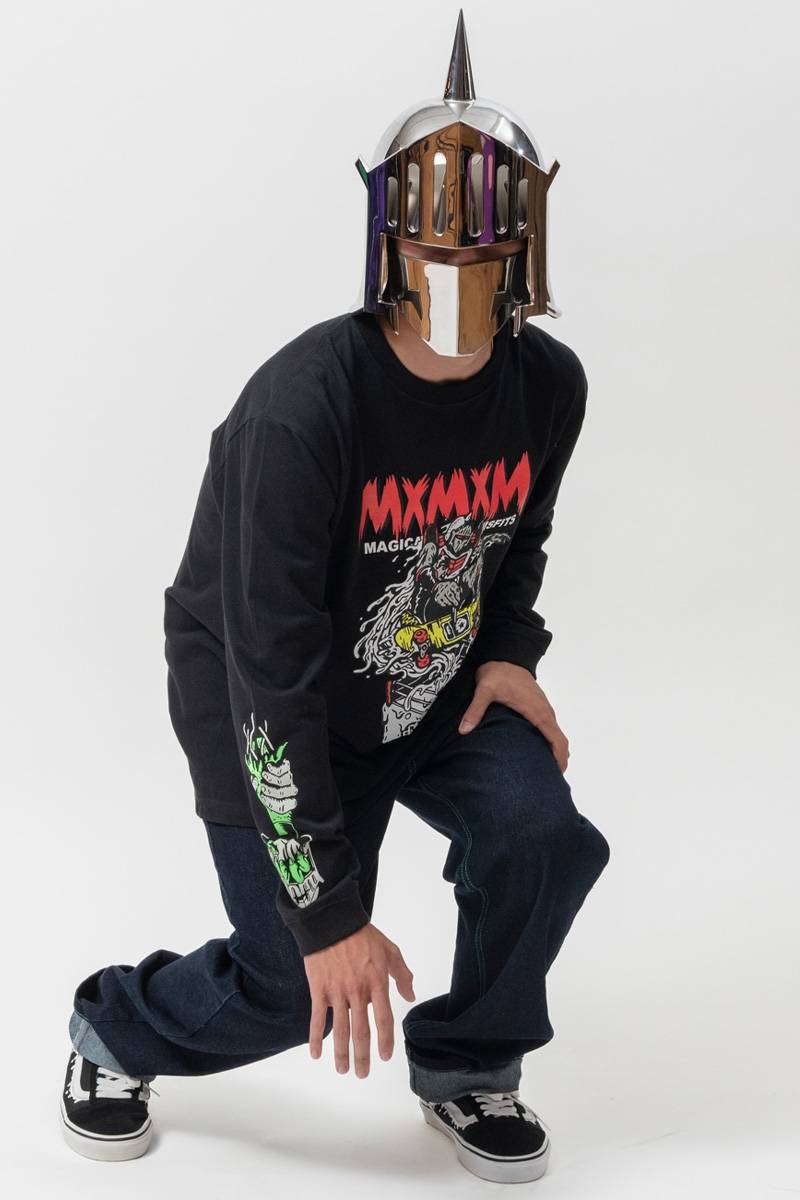 フロントには、スケートボードをしている“ロビンマスク”、 右袖には“あの名場面の真実?”を再現できる仕掛けデザインを落とし込んだ ロビンマスク愛を込めたLONG TEEです。