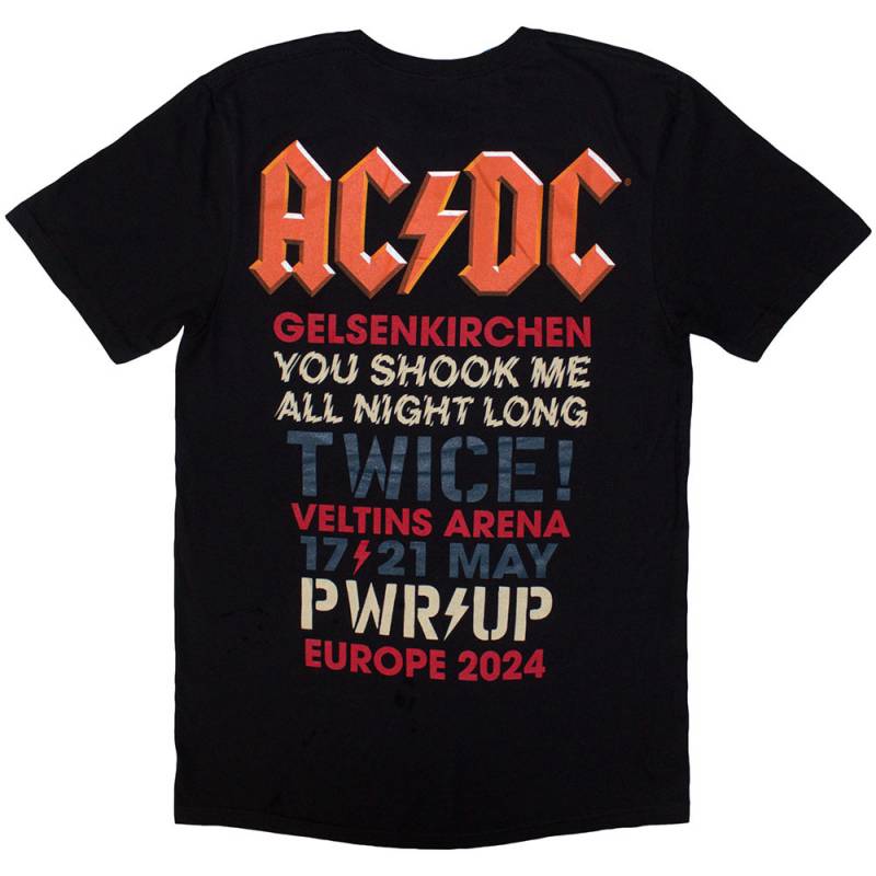 【予約商品】AC/DC バンドTシャツ ユニセックス: PWRD-UP Gelsenkirchen '24 (Black) (Back Print & Ex-Tour) (Small) - BLACK