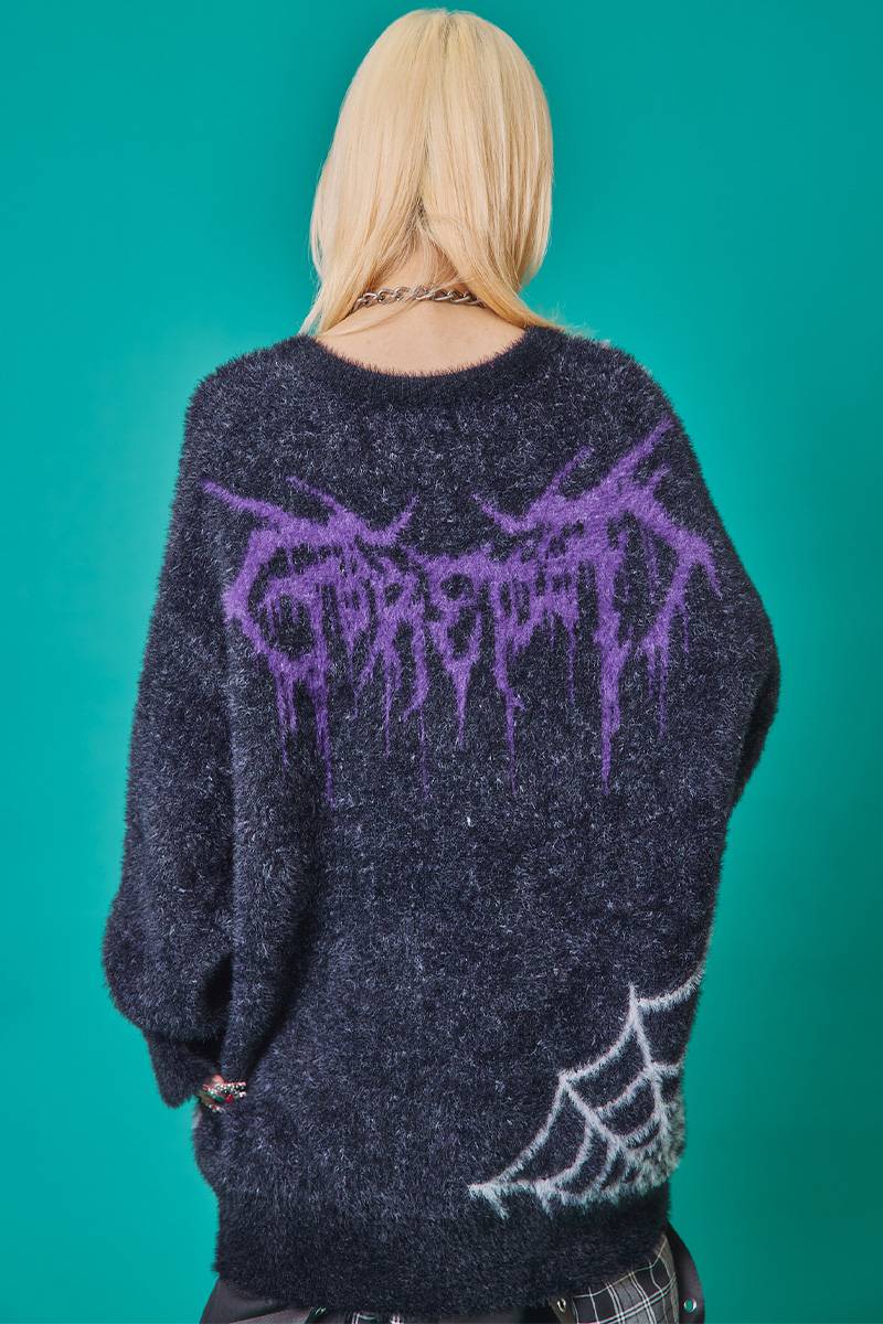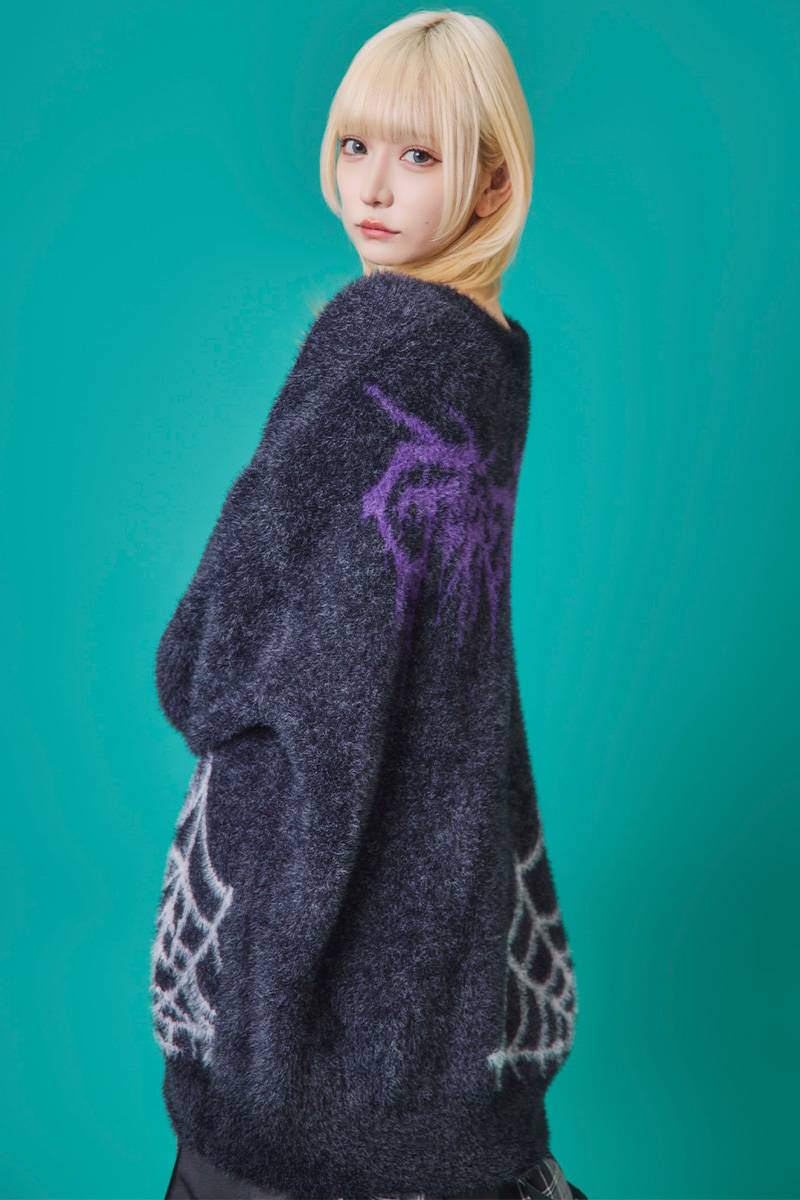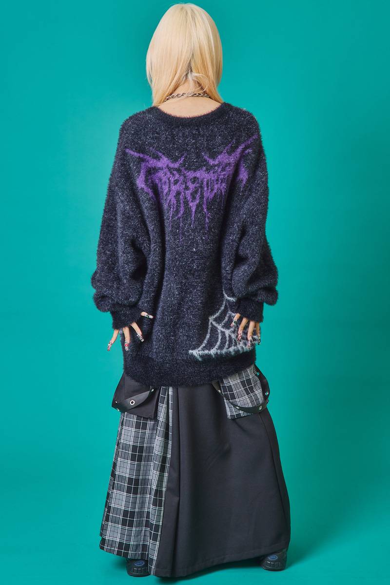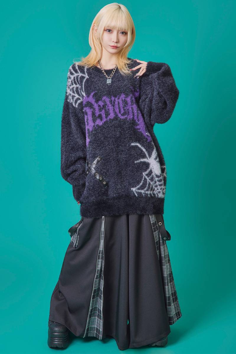 PSYCHO NATION(サイコ・ネーション) クロススパイダークルーニット - Black×Purple