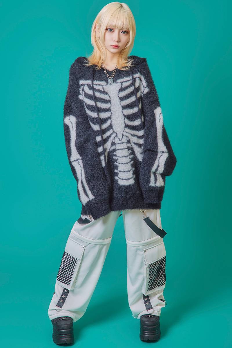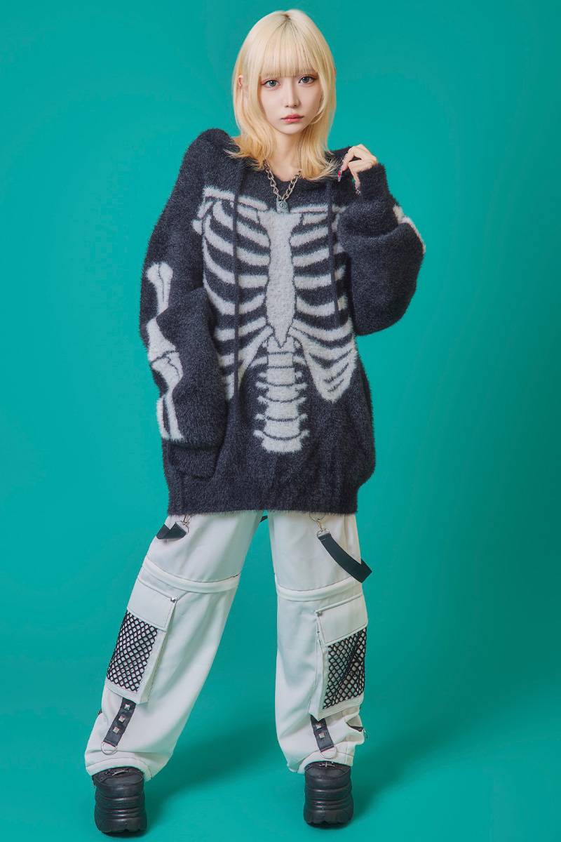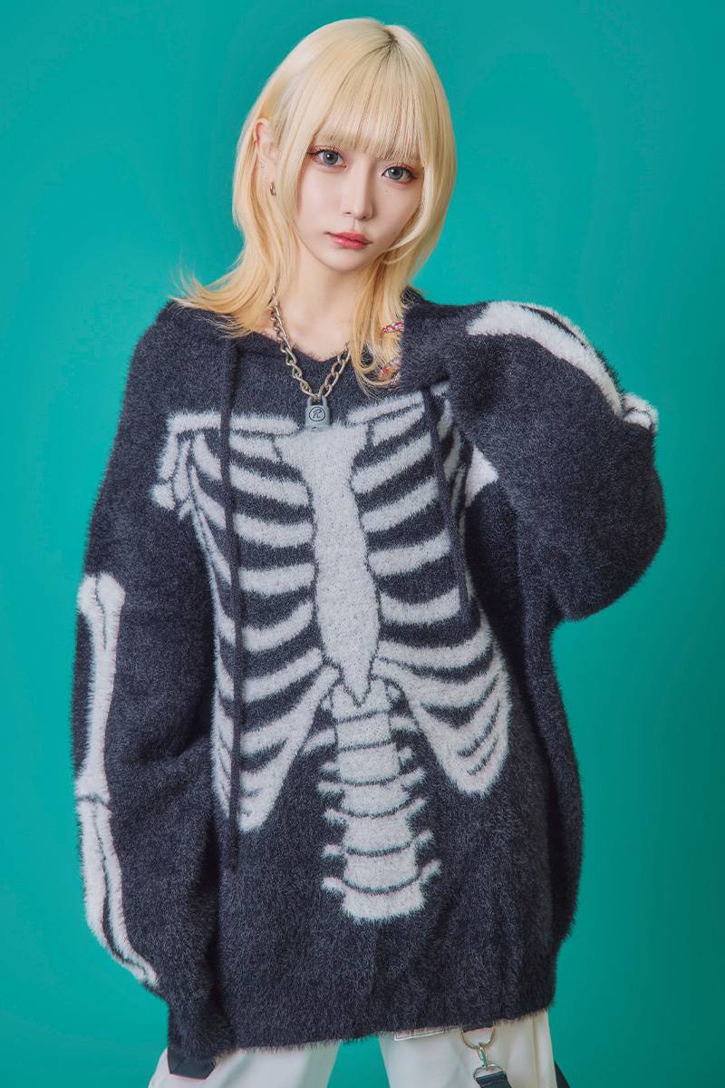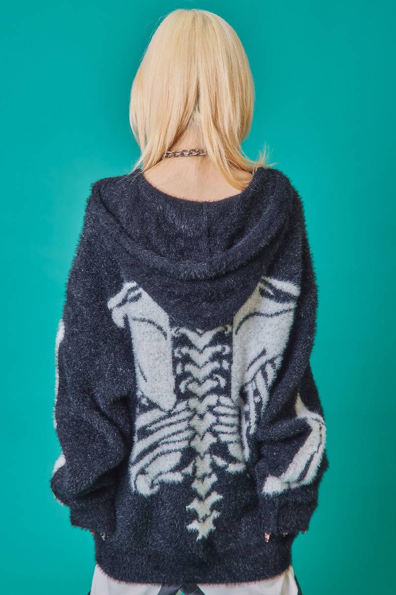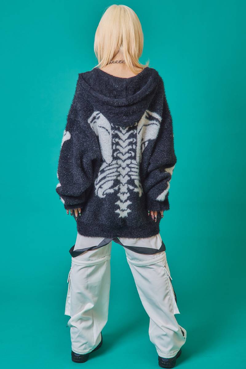 フロント、バックにボーン・モチーフをデザインしたシャギー・ニット・パーカーが登場!