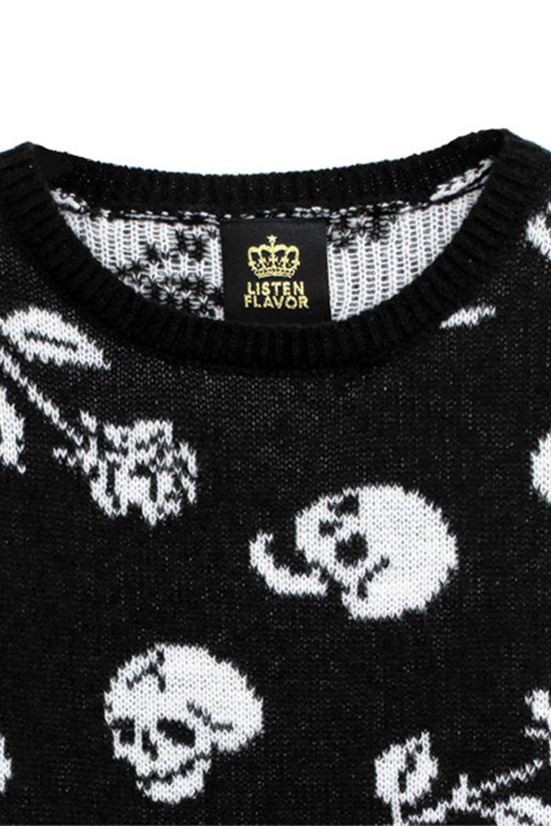 LISTEN FLAVOR (リッスン・フレーバー) 薔薇と髑髏のニット - Black