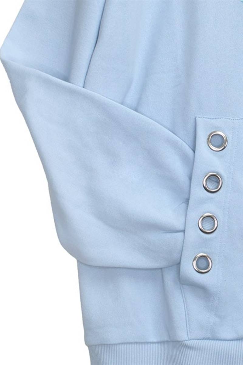 ポケットに打ち込まれたハトメリングがゴシックで未来感のある輝きを放つ一枚で主役、インナーでも映えるトレンド感MAXのプルパーカーです。