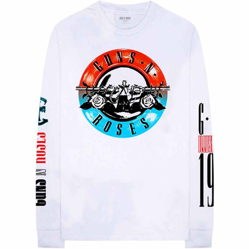 【予約商品】GUNS N' ROSES Unisex Long Sleeve バンドTシャツ: Motorcross Logo (White) (Back & Sleeve Print)