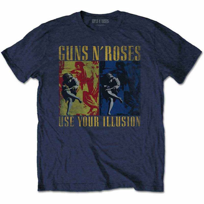 【予約商品】GUNS N' ROSES バンドTシャツ ユニセックス: Use Your Illusion Navy (Navy Blue)