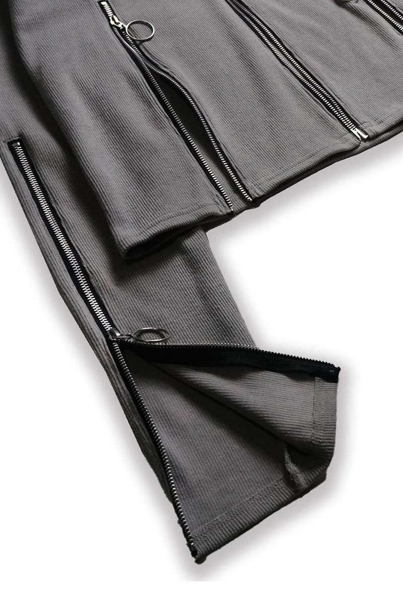 リブ編み生地を使用したタイトフィットなトラックトップス。