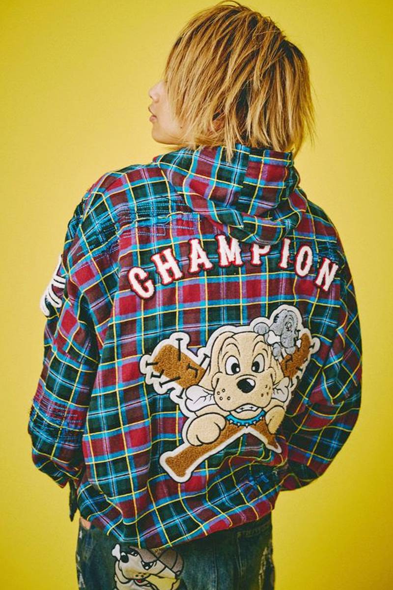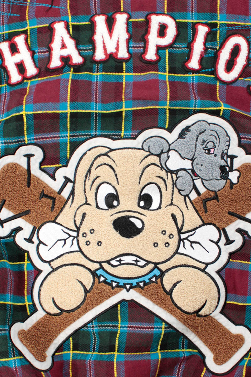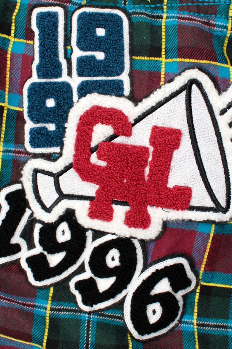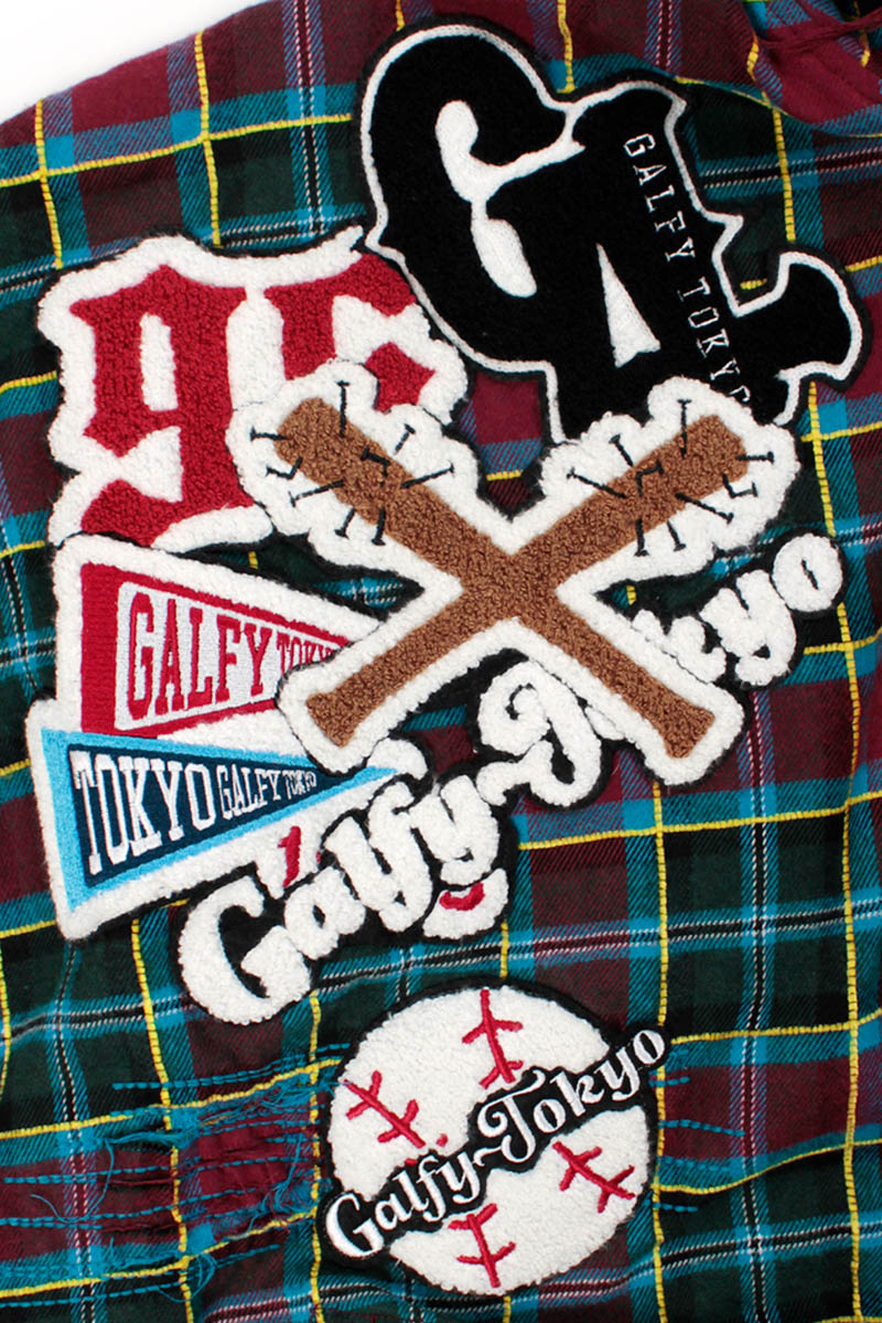 GALFY(ガルフィー) ワッペンだらけチェックシャツパーカー - Wineチェック
