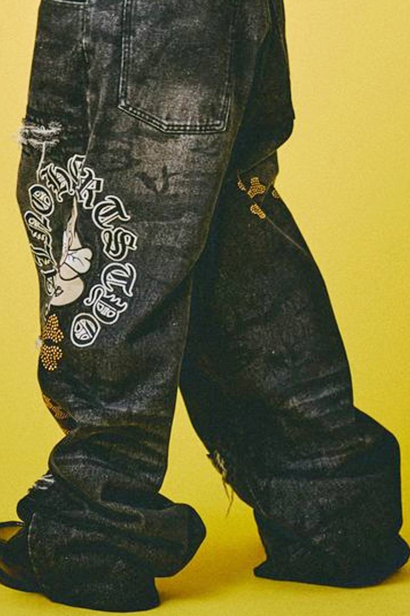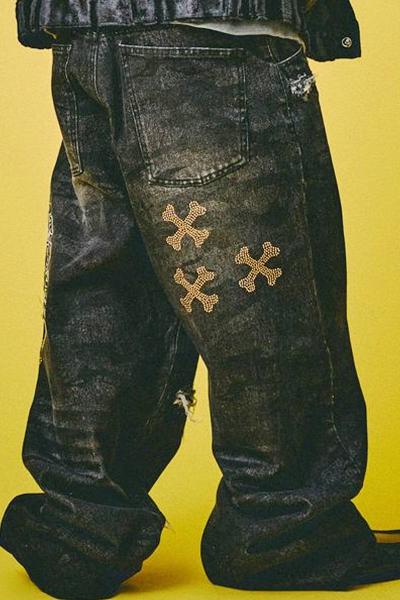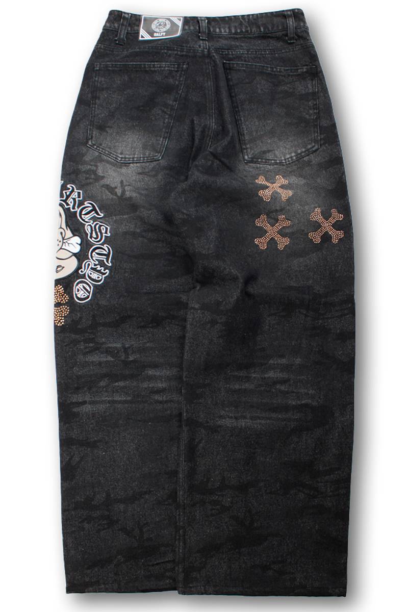 【予約商品】GALFY(ガルフィー) ピカピカ骨骨レーザーかも?デニム - Black