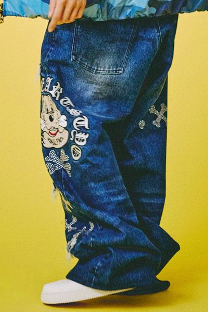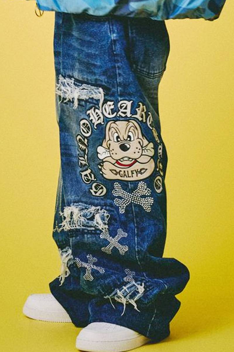 【予約商品】GALFY(ガルフィー) ピカピカ骨骨レーザーかも?デニム - Indigo