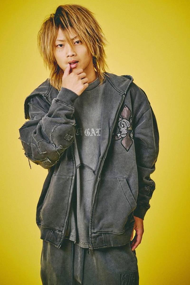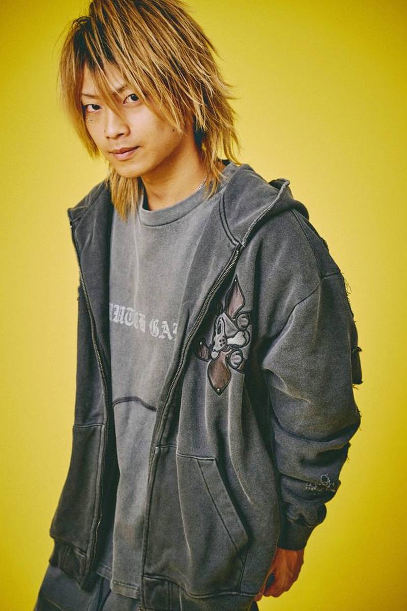 【予約商品】GALFY(ガルフィー) ぼろぼろロゴ百合の紋パーカー - Ink Black