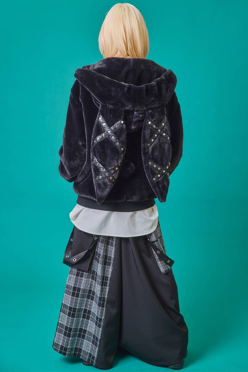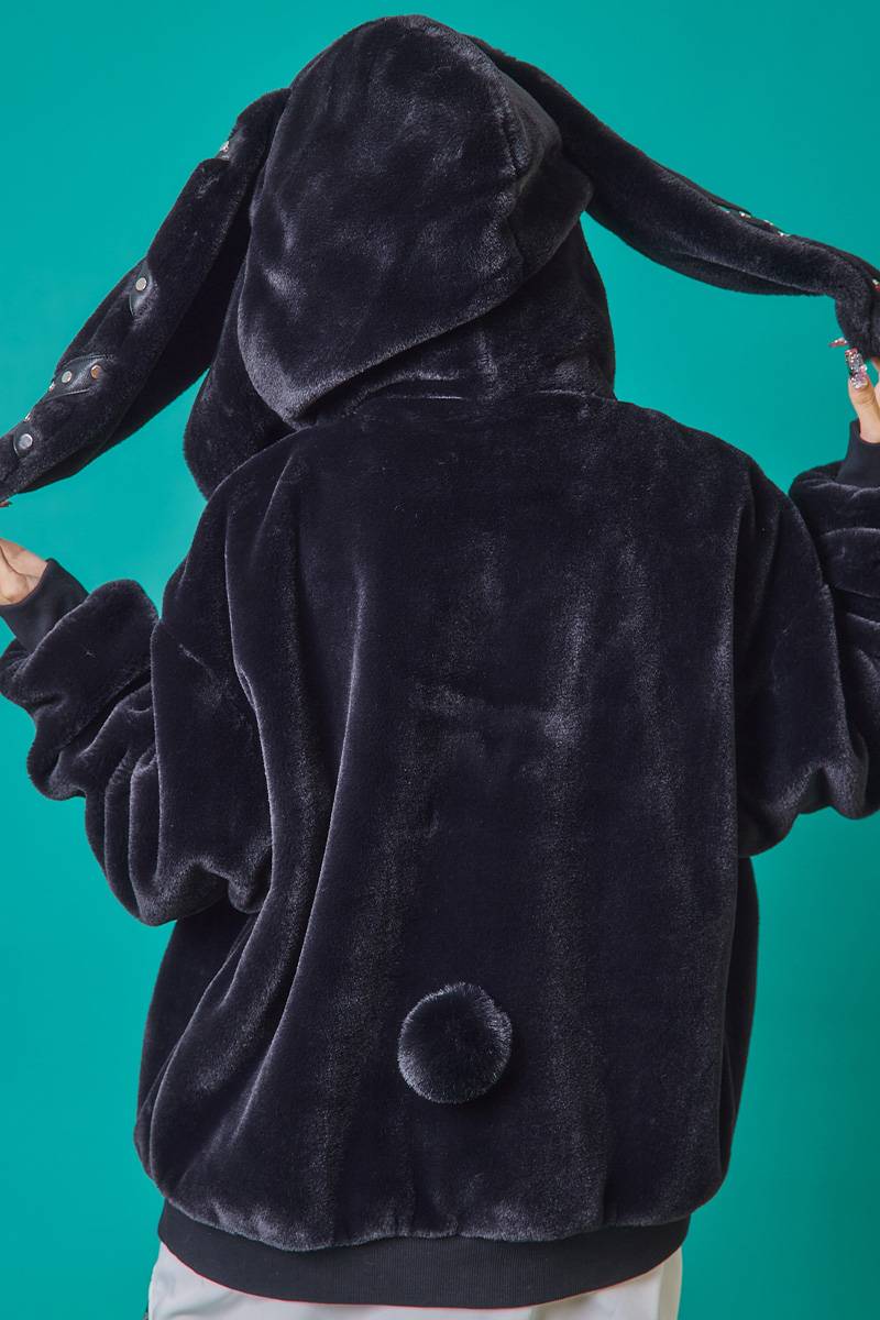 PSYCHO NATION(サイコ・ネーション) うさ耳ファーフード BZ - Black