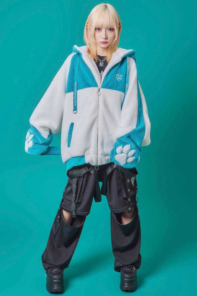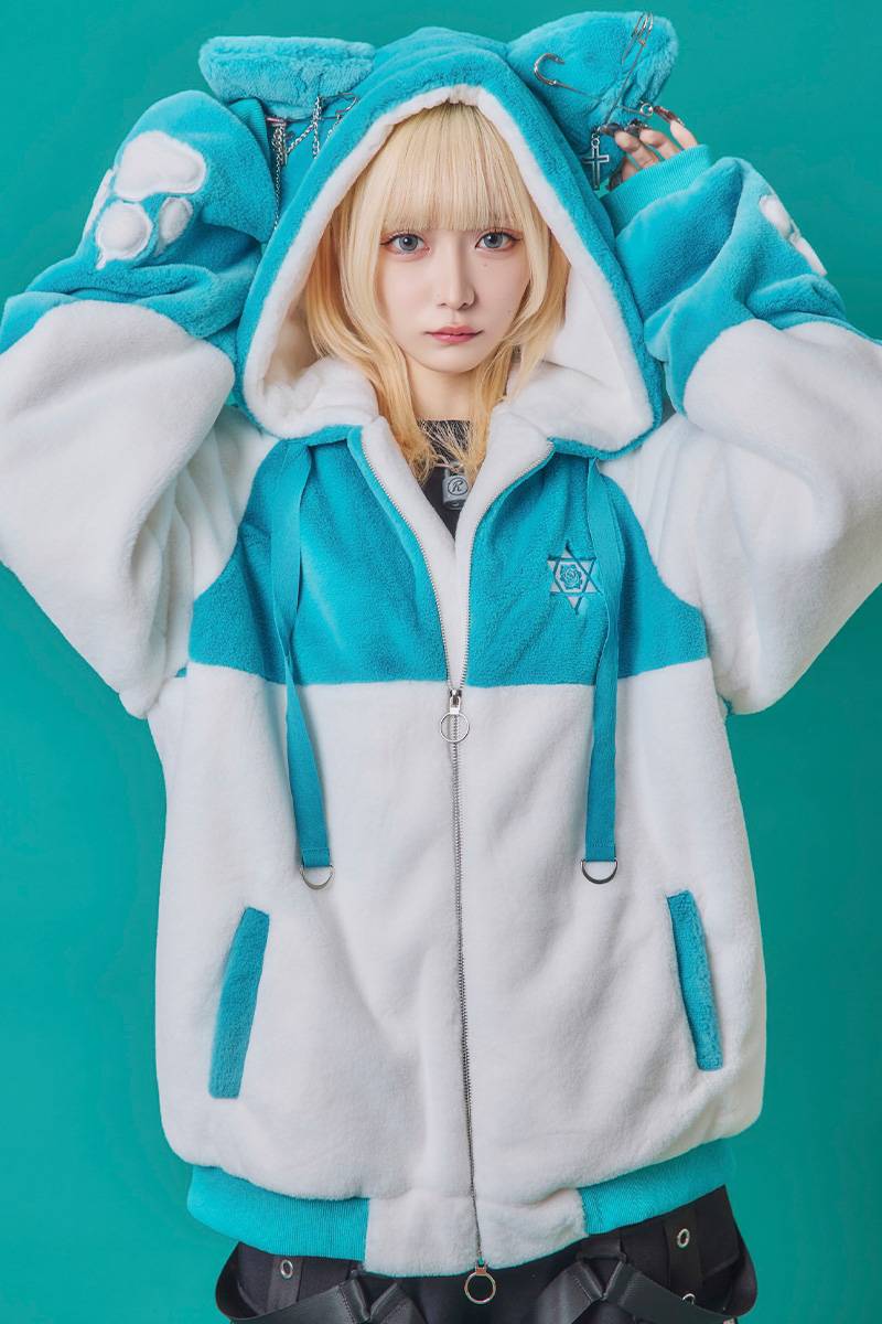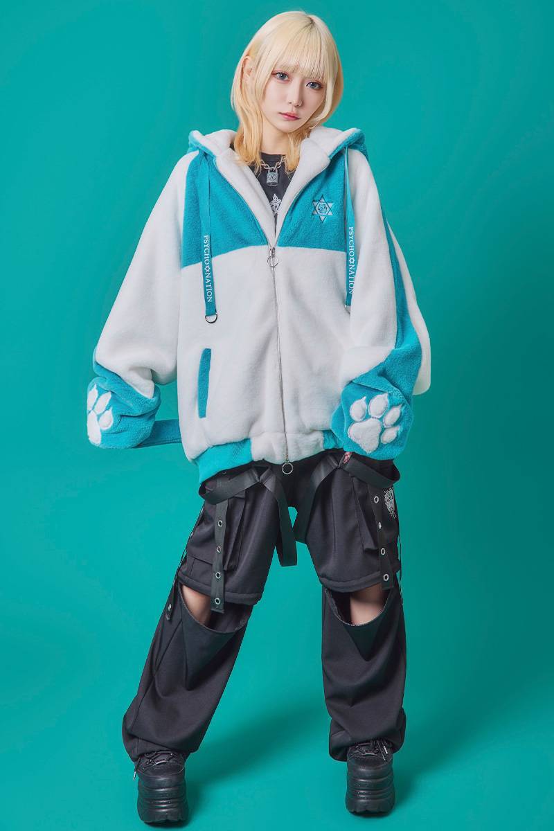 PSYCHO NATION(サイコ・ネーション) 猫耳ファーフード BZ - Blue×White