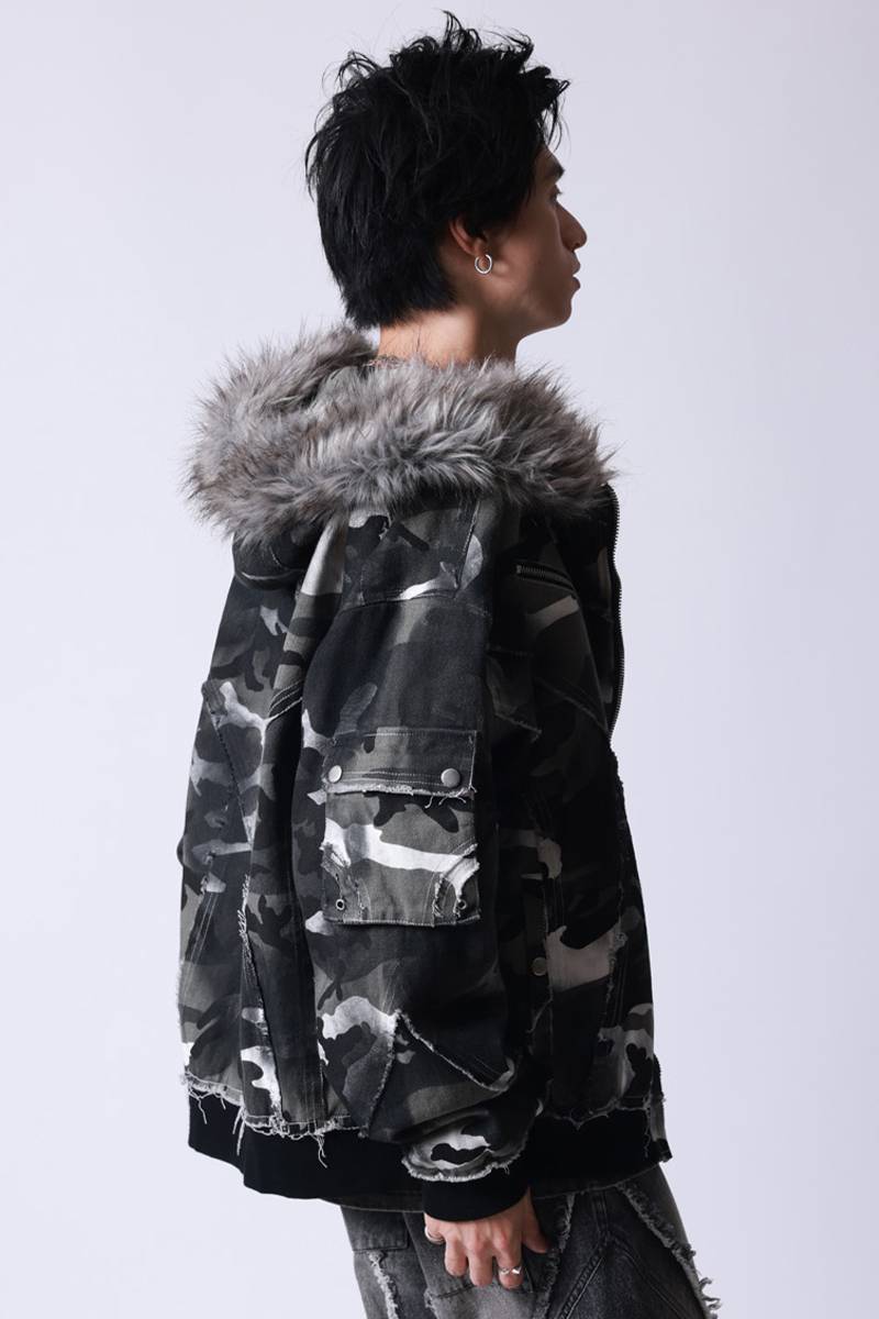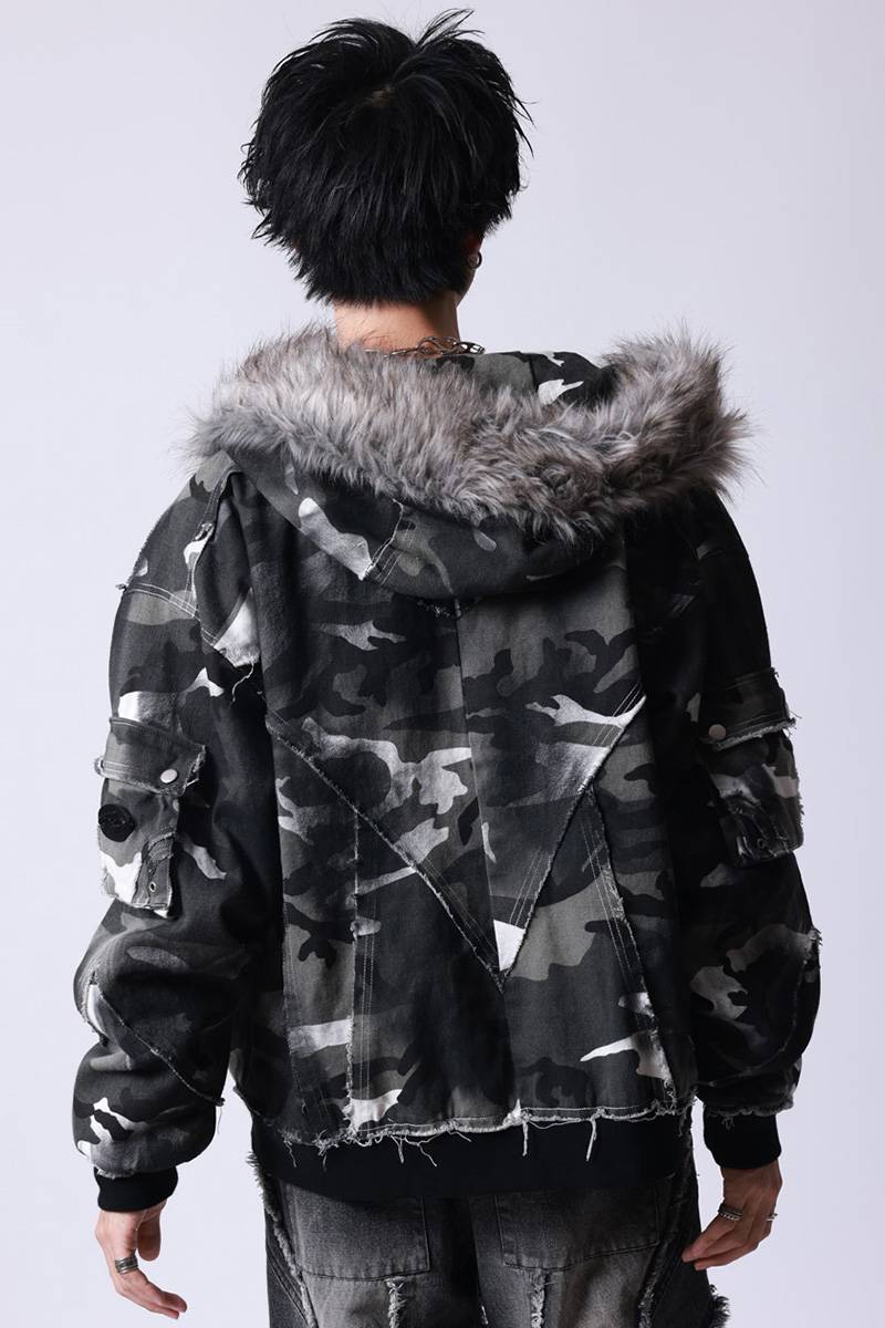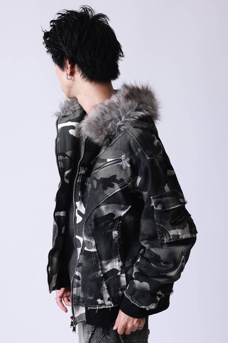 P.N UNDERGROUND(サイコ・ネーション・アンダーグラウンド) ファー脱着スプレーフードブルゾン - Camo