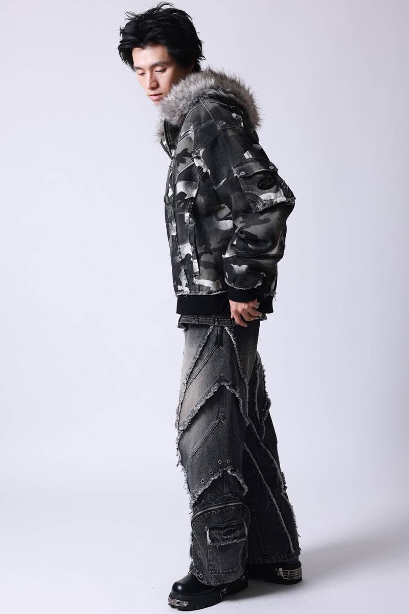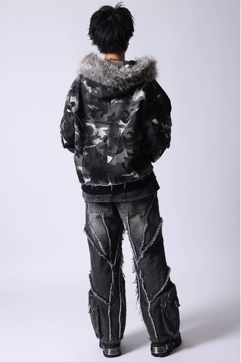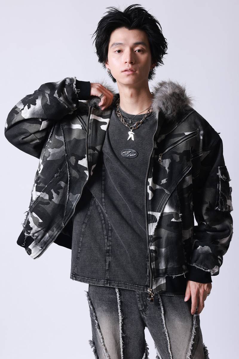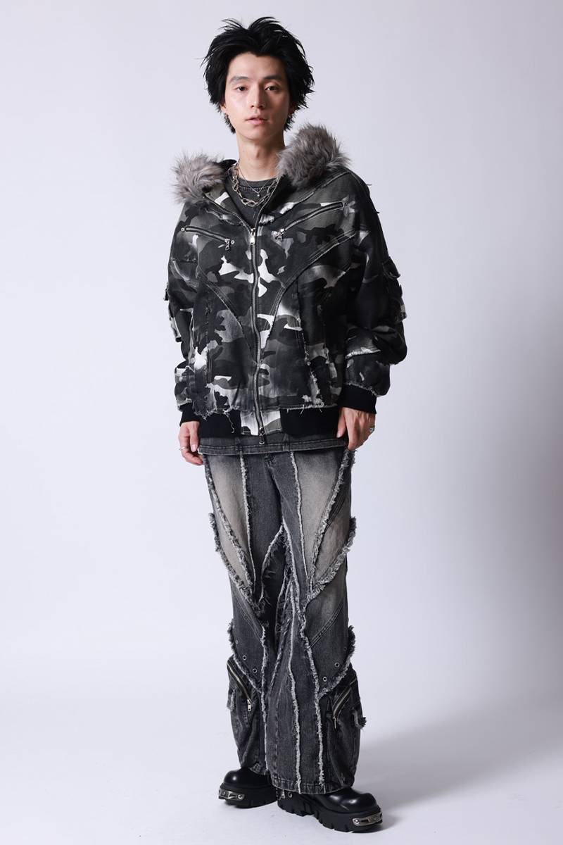 P.N UNDERGROUND(サイコ・ネーション・アンダーグラウンド) ファー脱着スプレーフードブルゾン - Camo